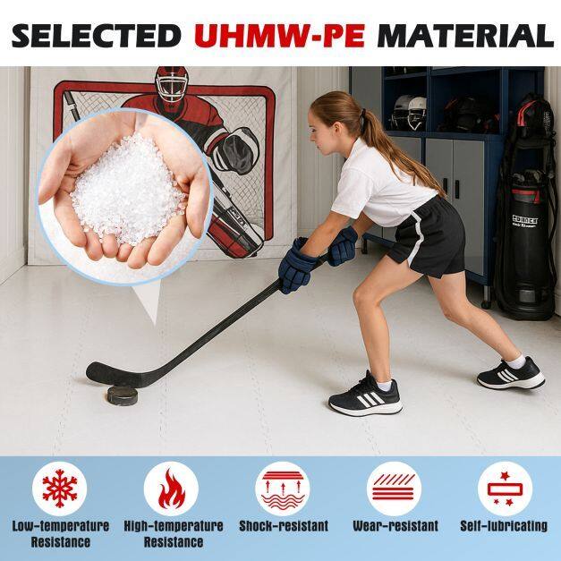 Wide Application: Featuring a non-slip base, these synthetic ice tiles can be easily installed on flat surfaces for stable and safe use. Enjoy hockey practices or games with friends indoors or outdoors, such as in the backyard, at home, at hockey practice facilities, or in garages.