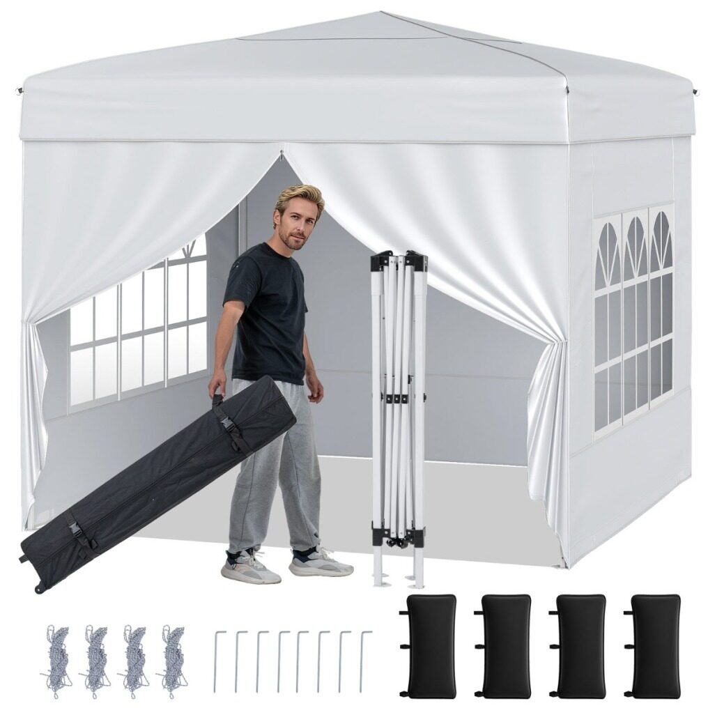 ●4 Detachable Sidewalls for Flexible Use: Featuring 2 zippered sidewalls and 2 sidewalls with windows, the tent allows you to add or detach 1, 2, 3, or 4 sidewalls on different occasions. It suits a wide variety of outdoor activities including beach parties, backyard BBQs, camping, park picnics, flea markets, and sports events.