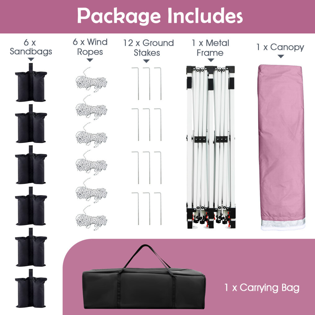 ● Easy Setup and Convenient Storage: Designed with a user-friendly pop-up structure, this canopy can be quickly set up and taken down without the need for additional tools, making it ideal for spontaneous events. Furthermore, it comes with a portable carry bag, enabling easy storage and transportation.