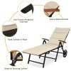 ● Adjustable Backrest and Removable Wheels: This patio chaise lounge chair can be adjusted to satisfy your different needs, featuring its seven back tilting positions. With two flexible wheels on both sides, the patio chaise lounge chair can be easily moved from patio to garden as you like, reducing a little bulkiness.