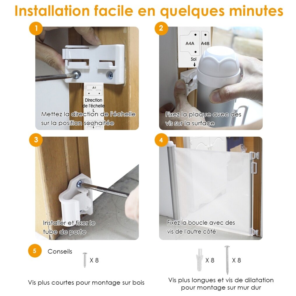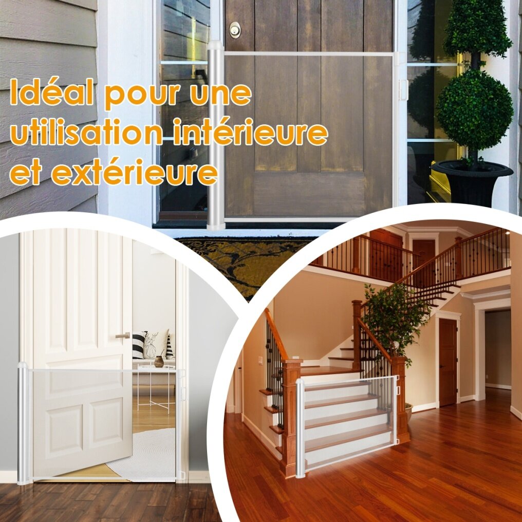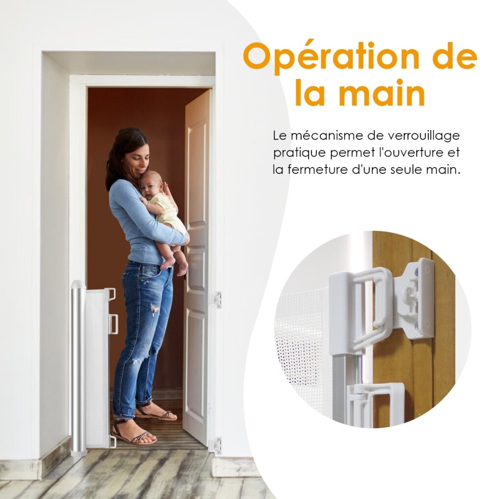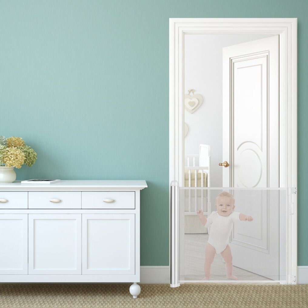 This baby gate is a retractable safety gate that is designed to fit into most room styles.