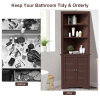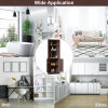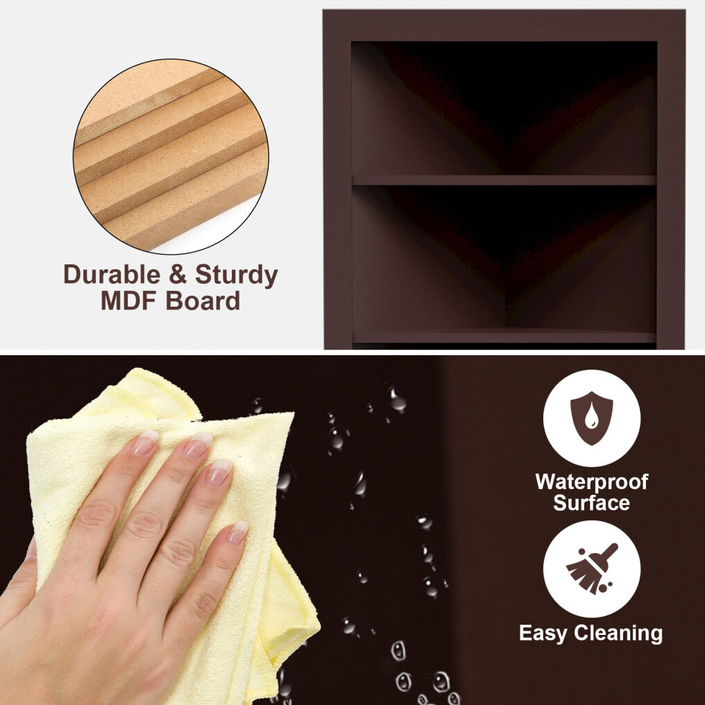 Made of premium P2 MDF board, this bathroom cabinet is stable and durable for a long lasting use. The three-layer open shelf and a closed cabinet provide you with sufficient storage space, allowing you to organize towels, shower gel, books and other supplies in an orderly manner. The elegant and modern appearance is perfect for blending with your bathroom, bedroom and living room.