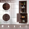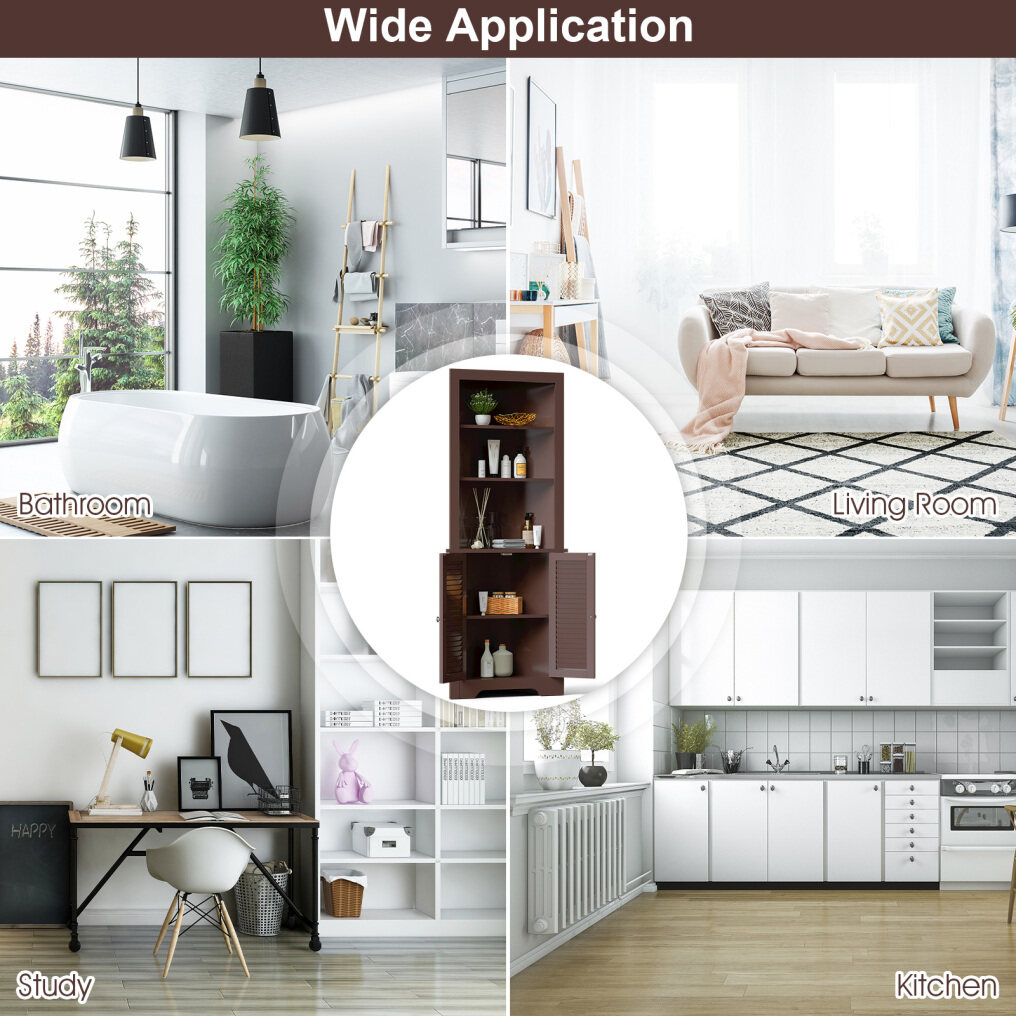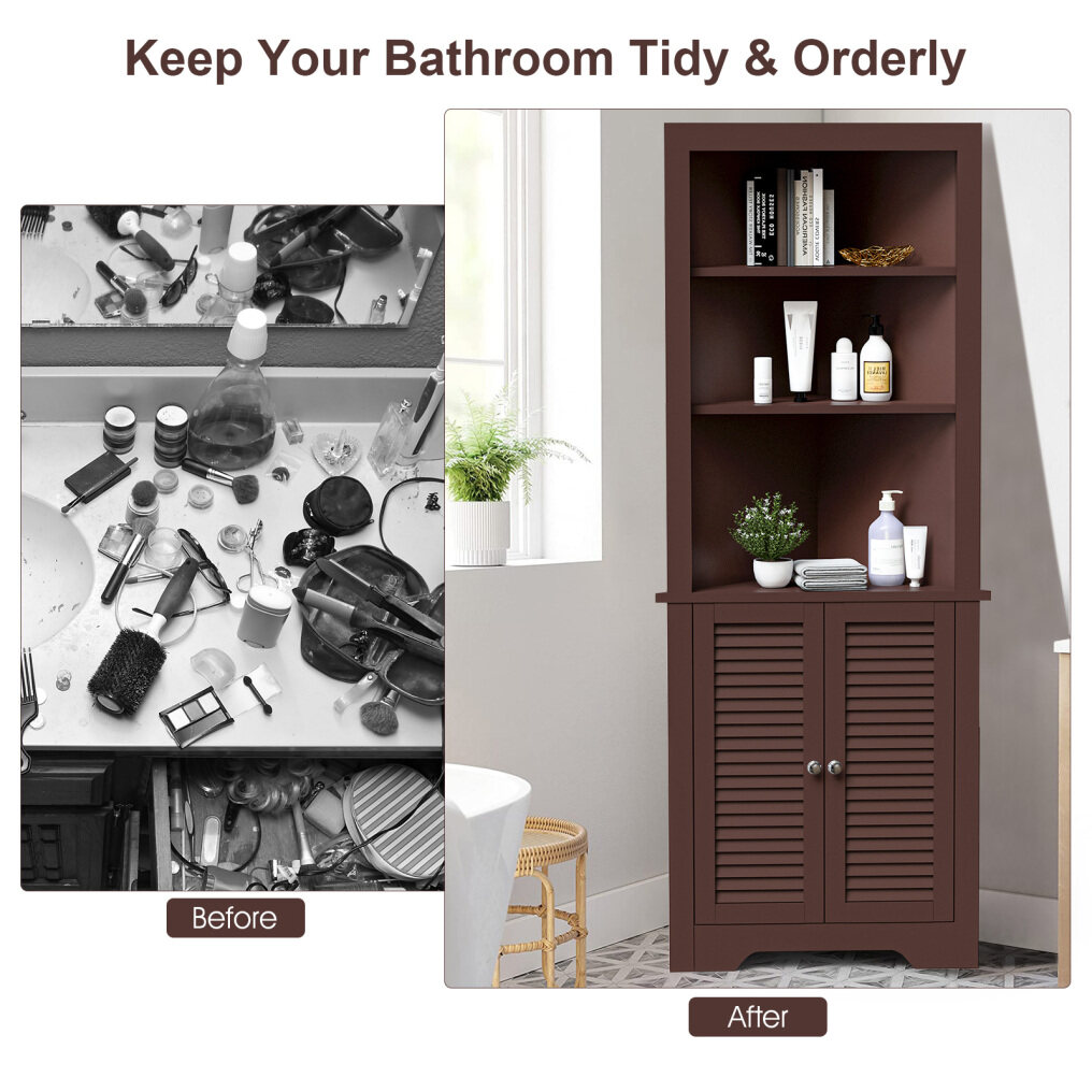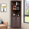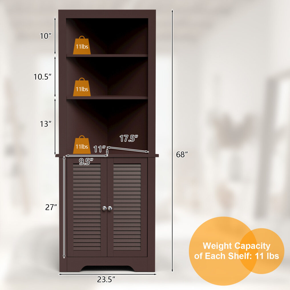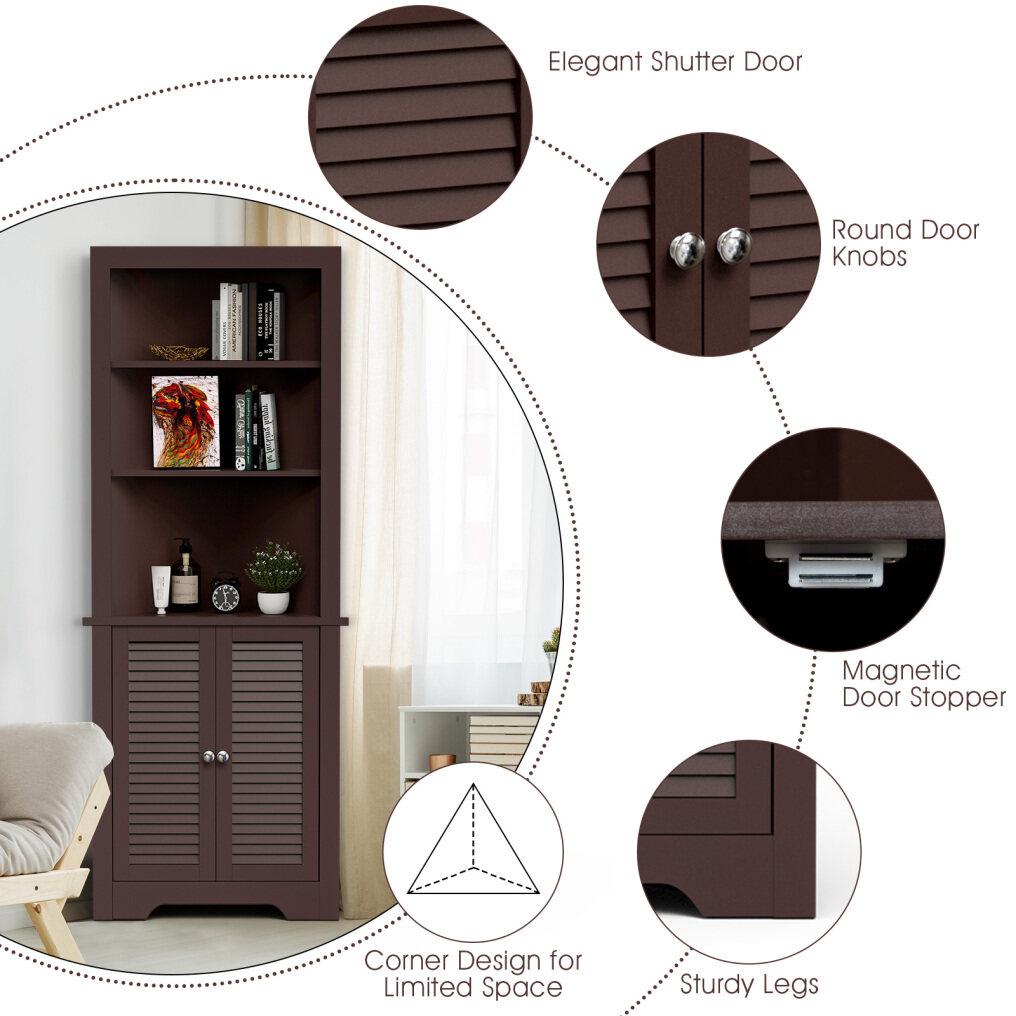 This multifunctional corner storage cabinet with three layers of open shelves and closed cabinets will provide you with enough vertical storage space to place various items.