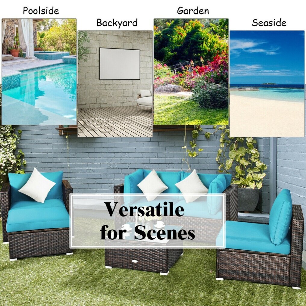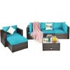 6 Pcs Patio Rattan Furniture Set with Sectional Cushion-Turquoise