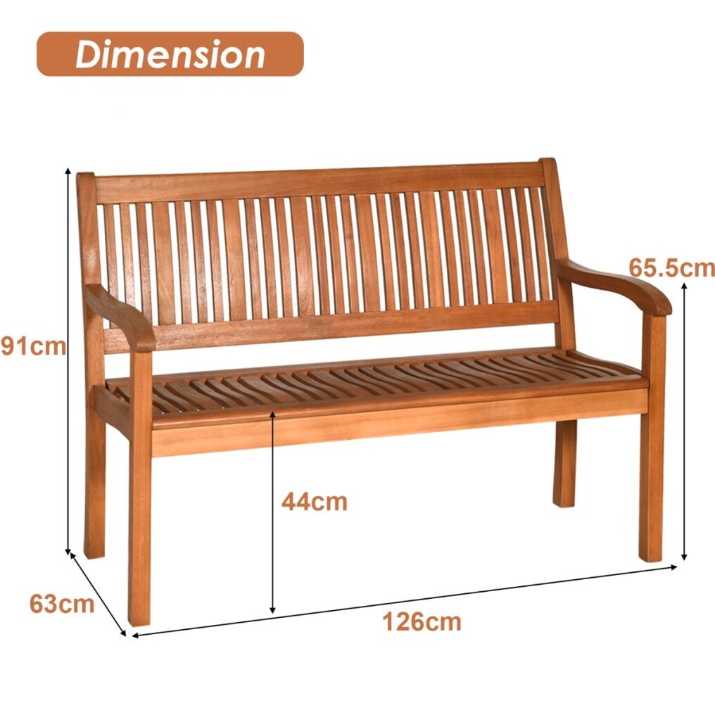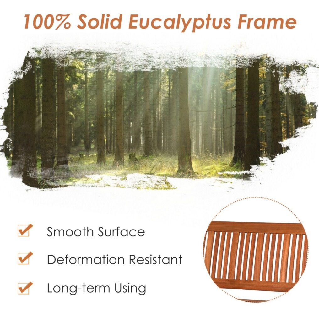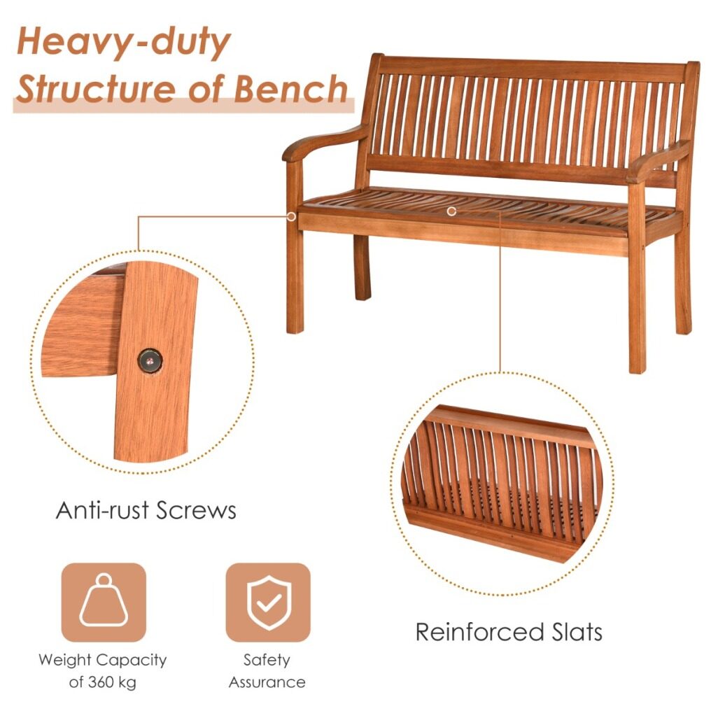 Solid Wood Structure: Compared to ordinary chairs made of synthetic wood, this park bench is made of eucalyptus wood, which is solid and has better sturdiness and stability. The outdoor bench is not easy to scratch, crack or break, and has a strong heavy load capacity of 360kg, ensuring long-term reassuring use.