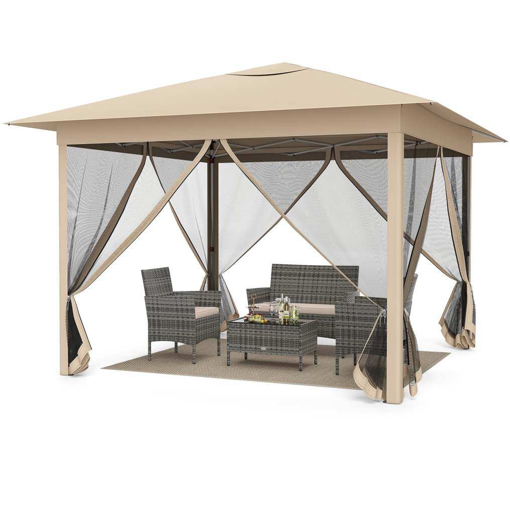 ● Customizable Space & Shade: This pop up canopy tent covers an expansive 11.5 x 11.5 ft footprint for nearly 132 sq.ft of shade with extended eaves, paired with 3 adjustable heights (8.2/8.5/8.8 ft). Moreover, it comes with a portable carrying bag, catering perfectly to camping, garden parties, or family gatherings in any setting.