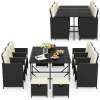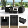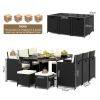 Longevity & Easy Care: Crafted from PE rattan, the 11 pcs patio furniture set not only boasts elegance but also offers superior weather resistance for long-lasting use. The washable non-woven fabric cushion cover ensures hassle-free maintenance, while the tempered glass tabletop is a breeze to clean with a simple wipe.