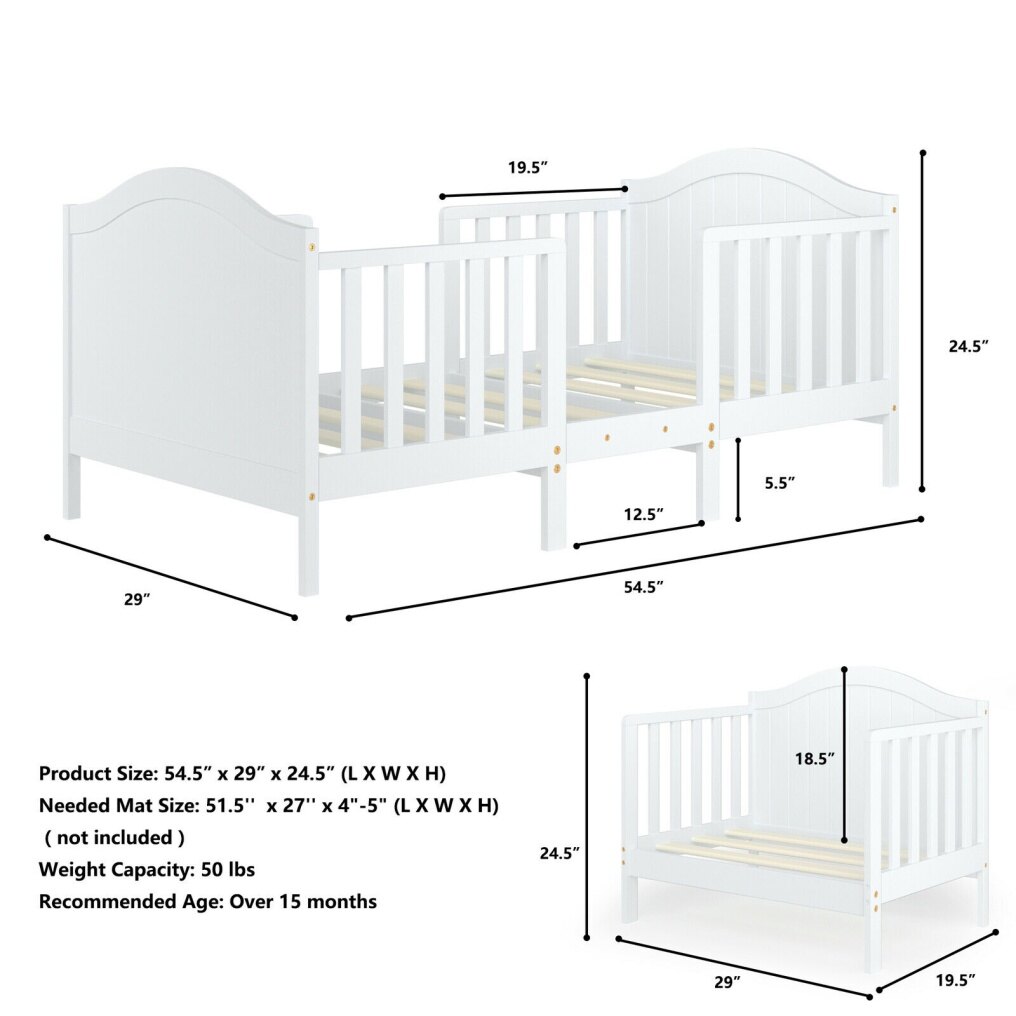- Fits crib mattress-51.5" x 27" x 4"-5" in dimensions (mattress, bedding, and pillow not included)