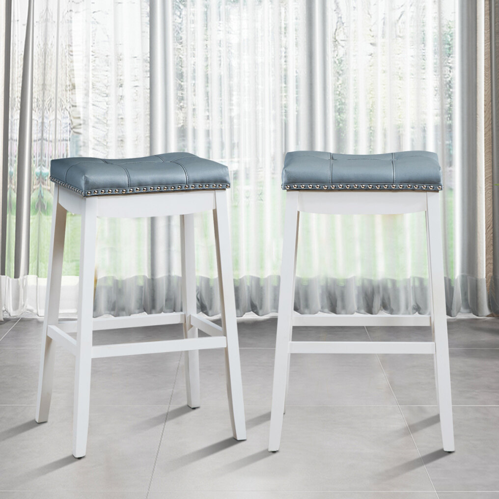 Stylish Design for Wide Applications: Various rivets around the seat that add aesthetic beauty to the bar stool. Stylish appearance makes it a perfect complement to either your dining table or kitchen counter. In this way, you can use it as bar stool to let yourself enjoy a drink or as dining stool to entertain your guests.
