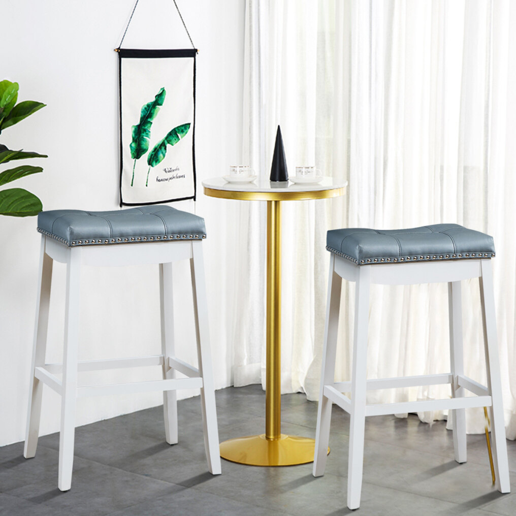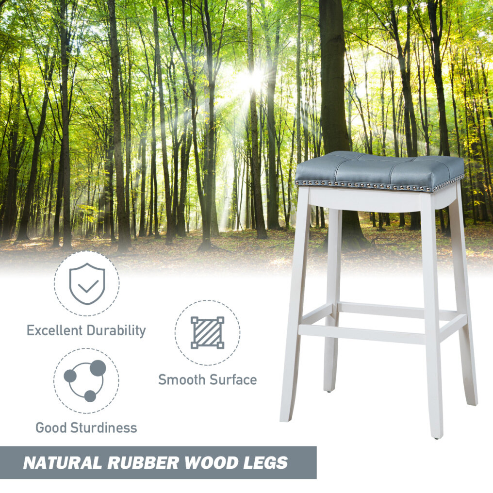 Are you eager to brighten up someplace with brilliant furnish? Then why not bring an effortlessly attractive look into your kitchen, restaurant or pub with this barstool. It will give you great satisfaction from contemporary design to unique saddle seat. The seat features soft upholstery and high resilience sponge shall let you feel more comfortable. Meanwhile, compared with other wood, rubber wood features better durability and toughness, and that’s why it is adopts rubber wood legs. In this way, sturdy and thickened rubber wood legs will support you powerfully when you sit in the front of bar counter to enjoy a drink. 4-Sided footrest can not only rest your feet but also plays the role of reinforcement. Thanks to simple structure and detailed instruction, the process of assembling the bar stool will take less time.