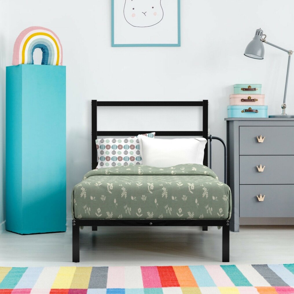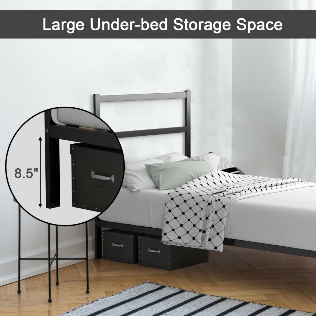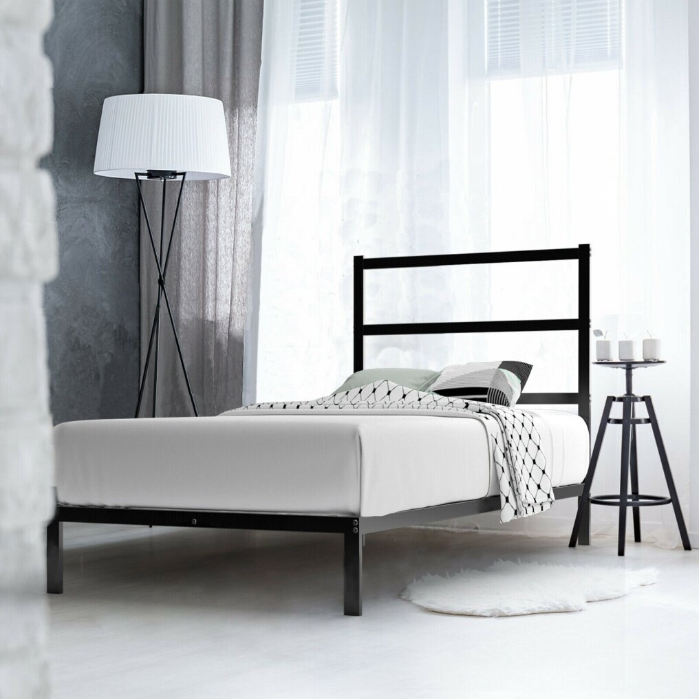 ● Heavy-duty Steel Structure: Constructed of sturdy steel pipes and tightly connected by premium hardware, this metal bed frame ensures long-term usage without easy deformation or cracking. 5 heavy-duty legs provide stable and powerful support, which can bear up to 220(twin)/400(full)/450(queen) pounds.