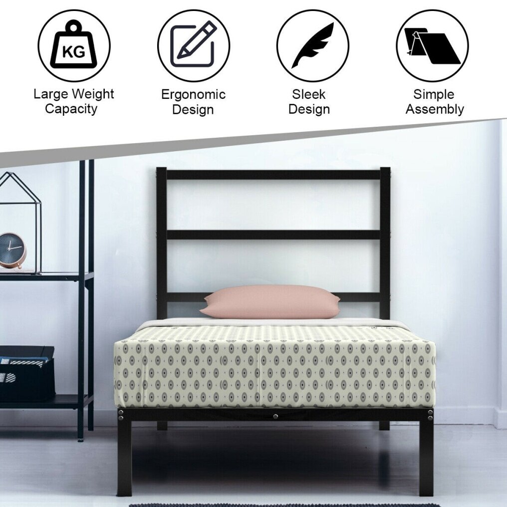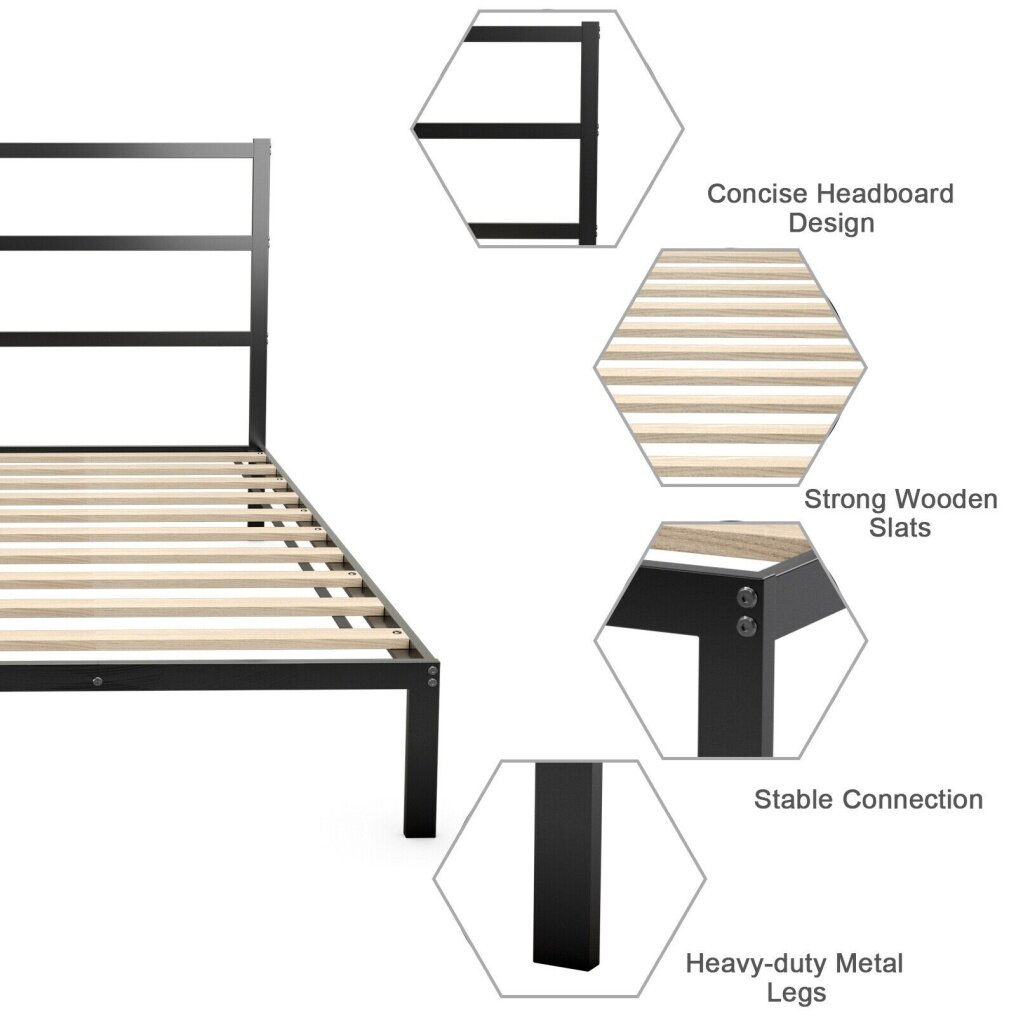 ● Simple and Modern Design: Without any complicated decoration, our metal bed frame adopts a concise headboard design and classic matte black finish to create a modern appearance. It can complement each other with a variety of decoration styles and add a unique charm to your bedroom.