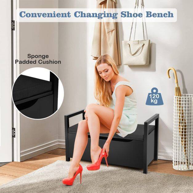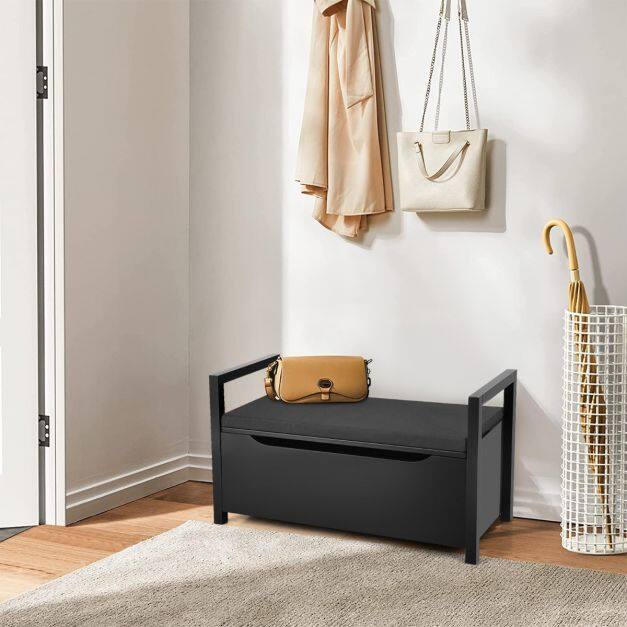 Take a seat and put on your favorite shoes. The best way to start and end the day is with this simple but modern shoe bench at your home. This classic yet modern style shoe bench with a padded seat is a must have for any front entryway. Crafted by sturdy materials, built to last for many years, this entryway shoe storage bench ensures that your space is tidy with your shoes hidden away. Use this storage bench to read your favorite books, then store them away inside when done, or put this bench in the playroom to store children’s toys - the possibilities are many, perfect for any entryway, bedroom, closet, porch, foyer, mudroom.