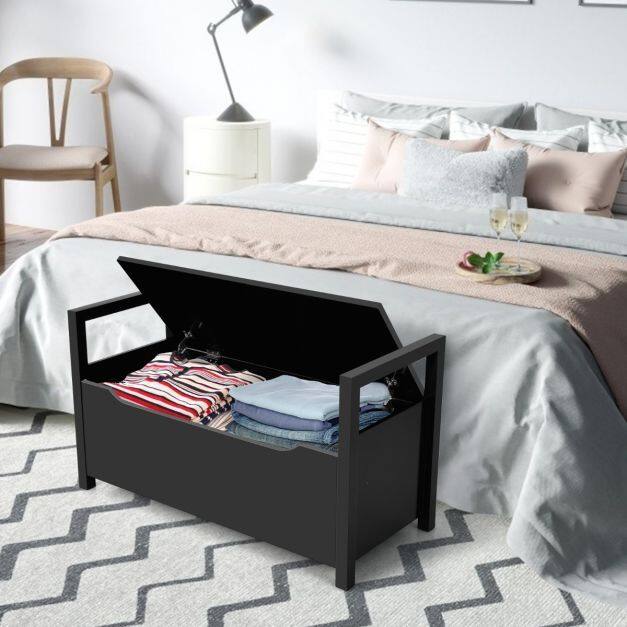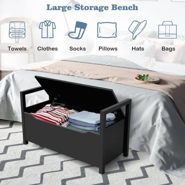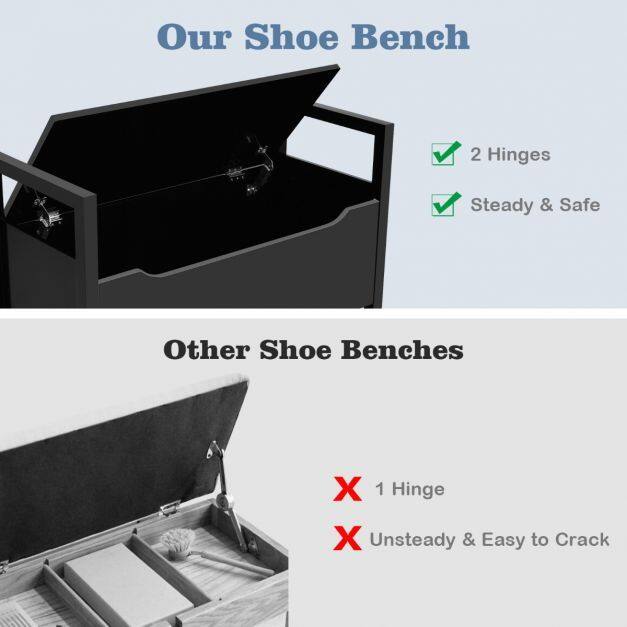 Ample Storage Space: This shoe bench is designed with a hidden space under the seat, where you can store shoes, socks, or other sundries, ensuring that your room is tidy and organized. Furthermore, the flip-up top design makes it convenient for you to take out at any time.