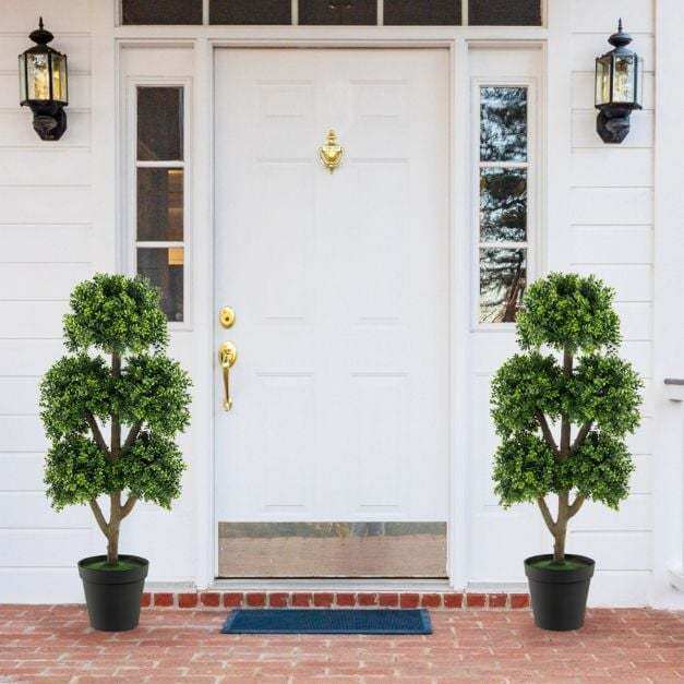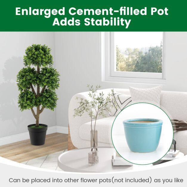 Durable and Secure Design: The artificial boxwood ball tree is crafted from PE material, ensuring it is odorless, non-fading and durable. To further enhance its stability, the faux decorative tree comes with a cement-filled pot to minimize the risk of tipping over.