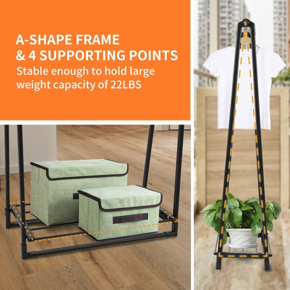 This A-frame clothes standing rack with a shoe shelf is excellent for providing more space to hang clothes!