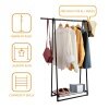 Designed in A shape and made of durable steel, it is firm and stable enough for your daily use, perfect for hanging clothes and storing shoes. The extensible rod can provide extra space as you need. The shoes can also be placed on the bottom shelf of this clothes standing, making it a practical rack with a high cost-performance rate. You can use the clothes rack at any place you need it, like a bedroom, dormitory, dressing room, or clothes shop.