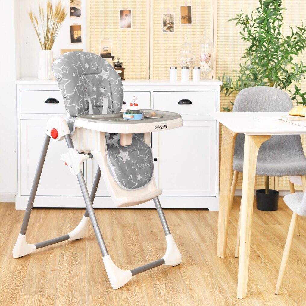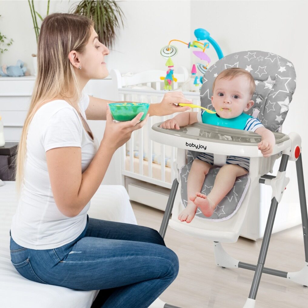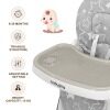 The adjustable high chair can meet the different purposes of eating, playing, feeding, resting, and interacting with parents. The 6-position height adjustment allows you to find the most suitable height to feed your baby. The adjustable backrest angle allows the child to enjoy the ultimate comfort whether it is eating or resting. It is worth mentioning that the distance between this double-layered tray and the backrest can be adjusted based on the age of the child. The upper layer of the disassembled double-layer tray can be cleaned in the dishwasher. When not in use, the entire tray can be hung on the leg to facilitate storage. Meanwhile, its folding design is specially designed for families with small spaces. The waterproof PVC fabric features good splash resistance and water stains are not easy to penetrate. In addition, the 5-point safety belt effectively prevents the baby from falling.