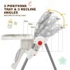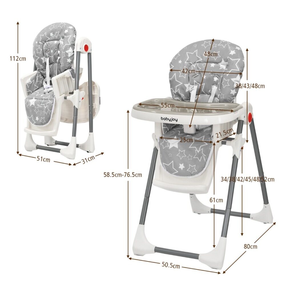 Double-layer Tray with 3 positions: The distance between the double-layer tray and the backrest can be adjusted 14/16/18cm to ensure that babies of different ages from 6 months to 36 months enjoy the most comfortable sitting feeling. The tray can be separated, and the top tray is dishwasher safe to simplify washing.