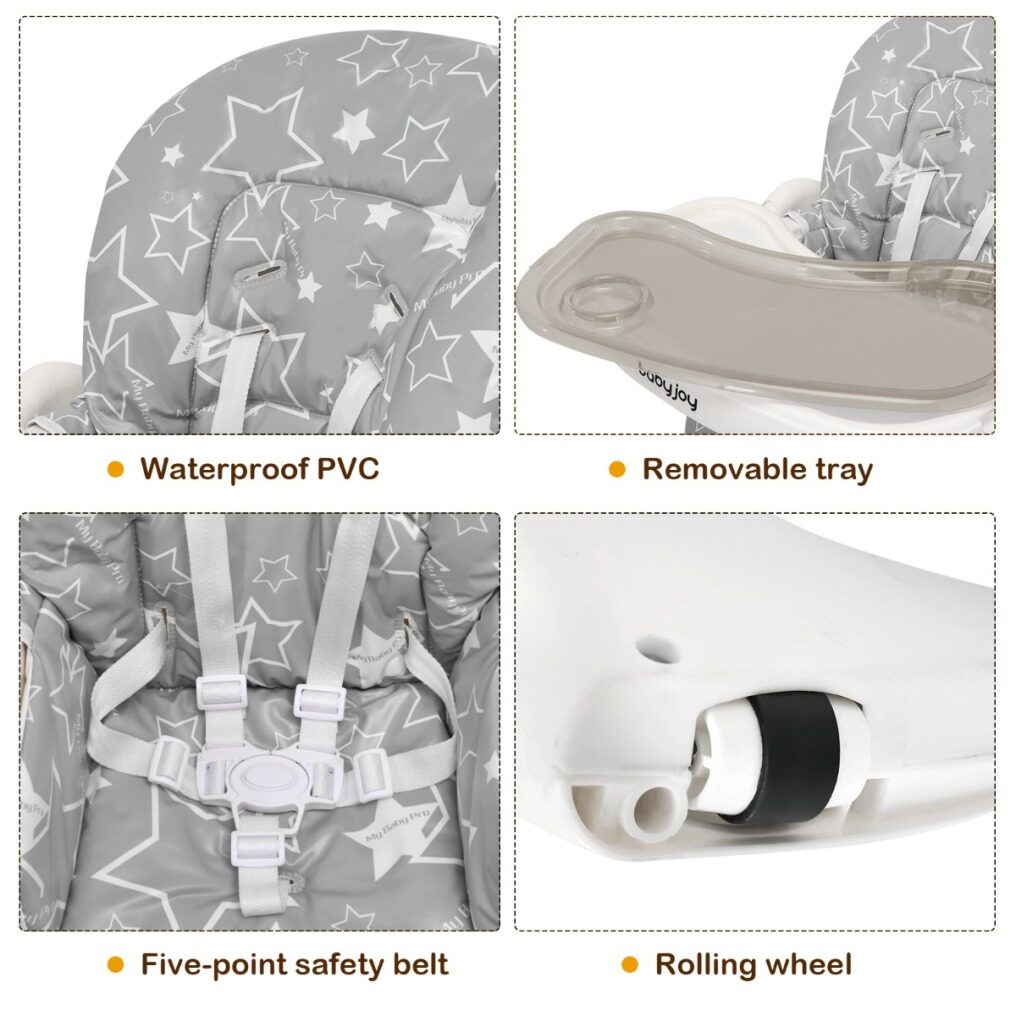 3-position distance between the tray and the backrest, suitable for 6-36 months baby