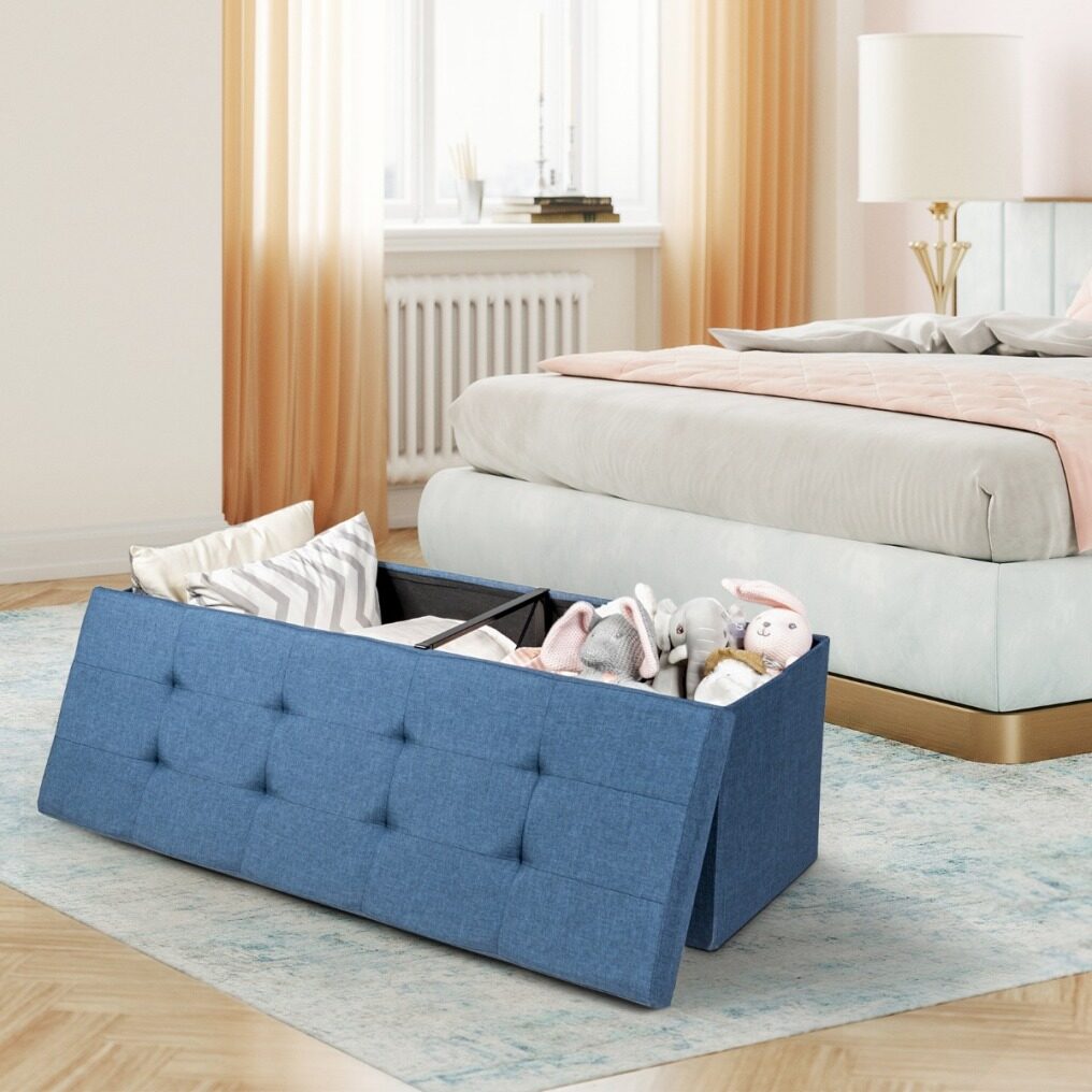 Comfortable Sitting Experience: In addition to being a clutter organizer to keep the space tidy, the storage chest can also be used as a bench or ottoman to relieve your fatigue. The soft fabric covering and thick foam-filled upholstered seat will bring you with a comfortable sitting feeling.
