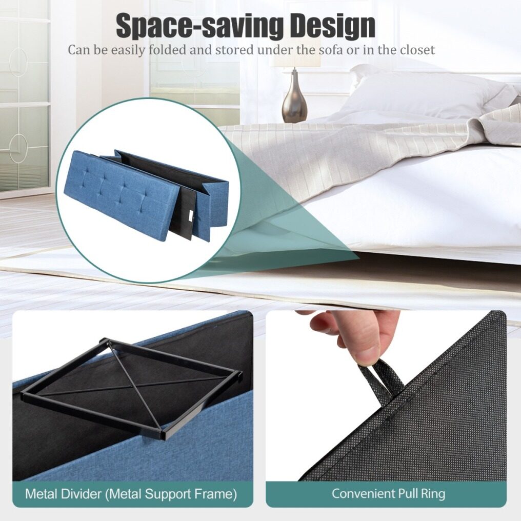 Sturdy & Stable Frame: Featuring a sturdy MDF frame, this folding storage ottoman has a high load bearing capacity of 150kg, which can easily seat 1-2 adults without easy bending or deformation. In addition, the metal divider in the middle provides additional strong support.