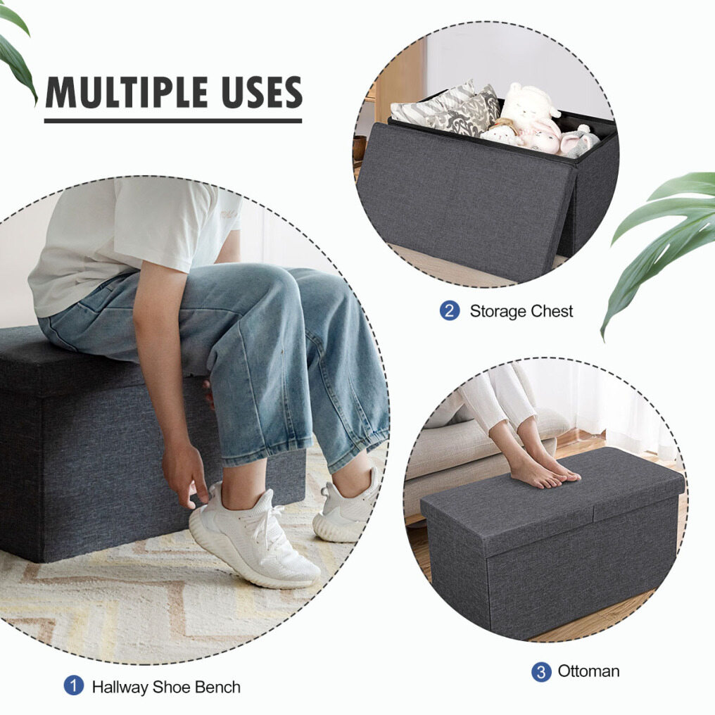 Bench with Storage Space: Under the lid, there is a large storage space where you can store books, toys, shoes, clothes and more. The lid can be half opened and is removable, so you can easily take out items.