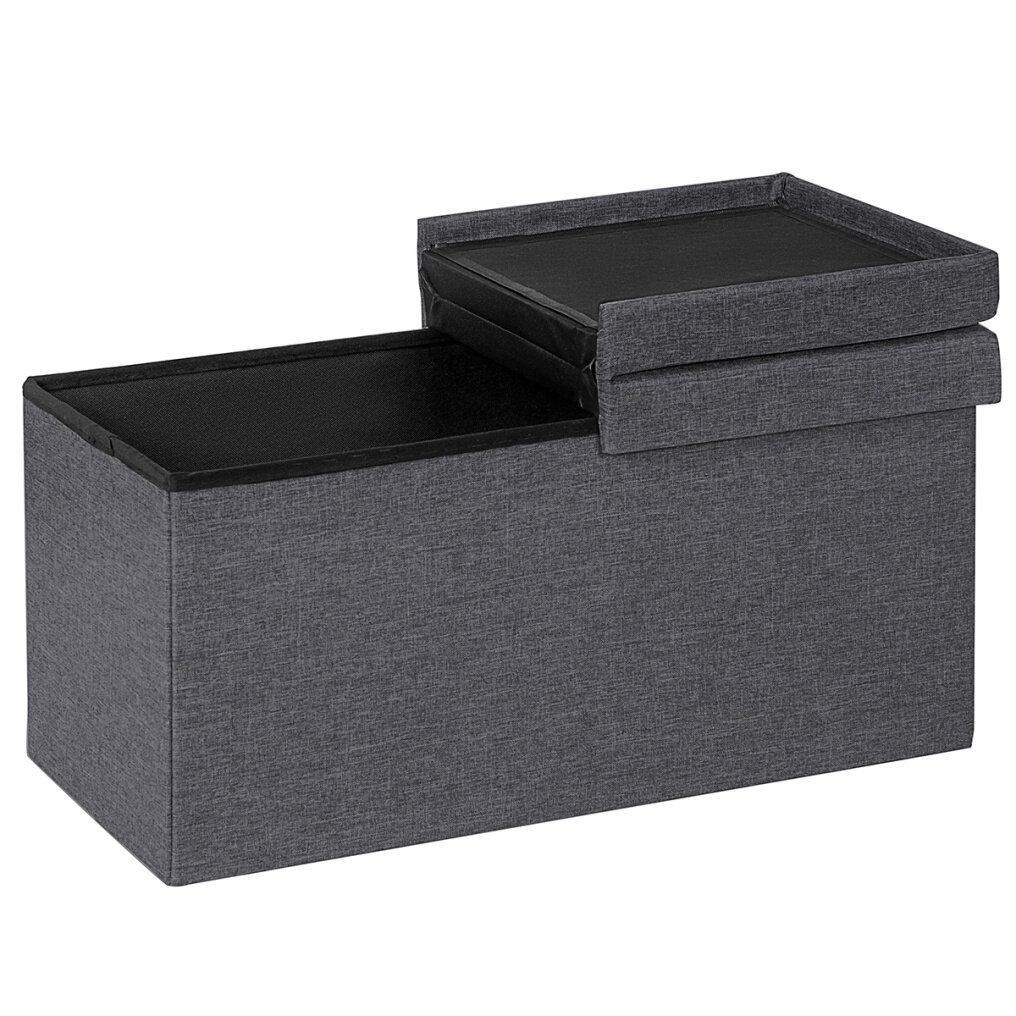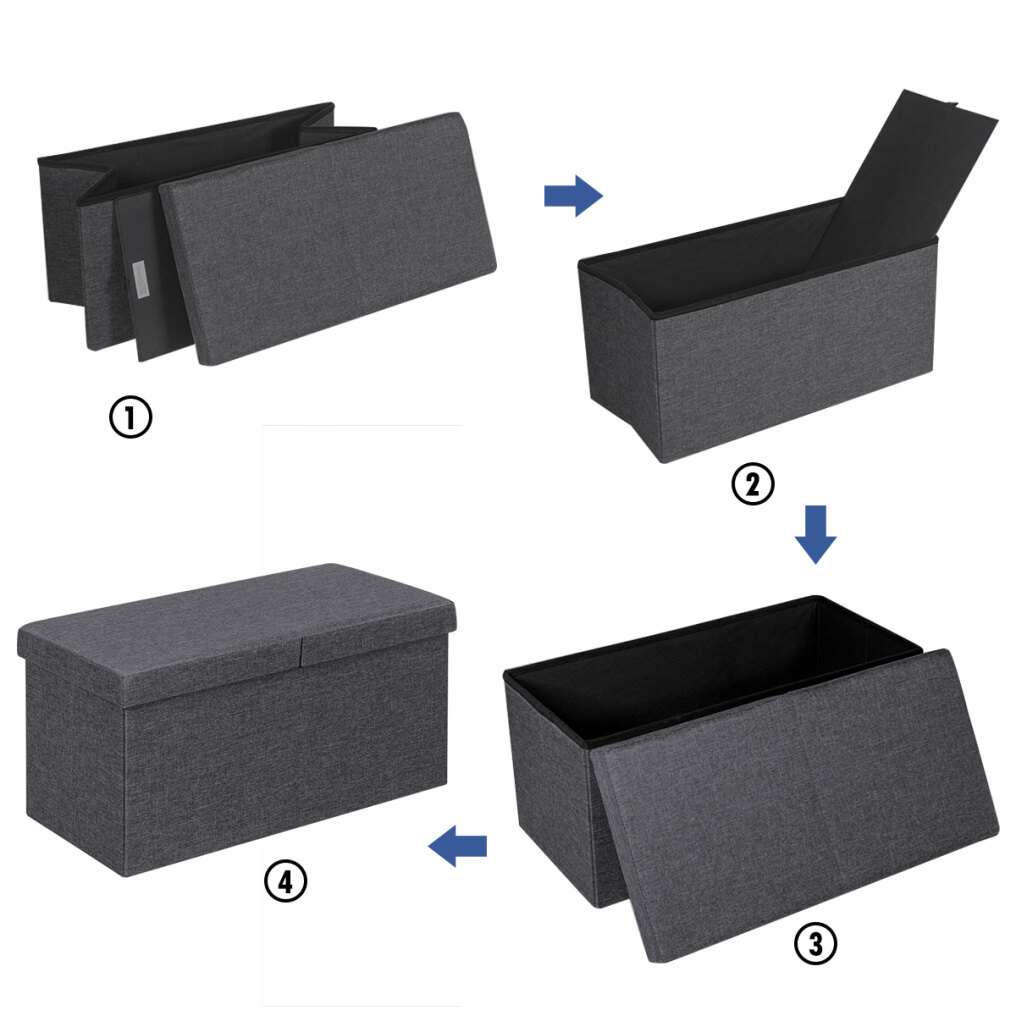 As decorative storage furniture, the practical bench enriches the bedroom or the entrance area. The bench is modern and can be easily integrated into the already existing bedroom furnishings. It is equipped with a removable lid under which the practical storage space is located. It offers plenty of space for pillows, blankets, clothes and other utensils. In addition, the stool also points through the folding design, so that it can be stowed away in a space-saving manner when not in use. As a bed bench or footstool, it comes into its own perfection in the bedroom and entrance area.