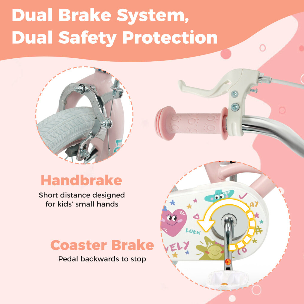 Child-friendly Dual Brake System: The front hand brake makes it quick to brake with a shorter grip distance. The rear coaster brake is easy to stop the bike by pedaling backward. Plus, the fully enclosed chain guard prevents kids' feet from getting pinched for increased safety.