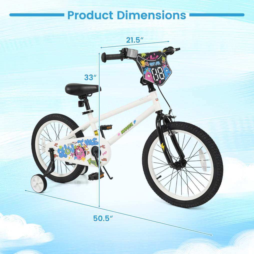 18 Inch Kids Bike with Training Wheels for Ages 4-8 Years Old White- Street Art Time