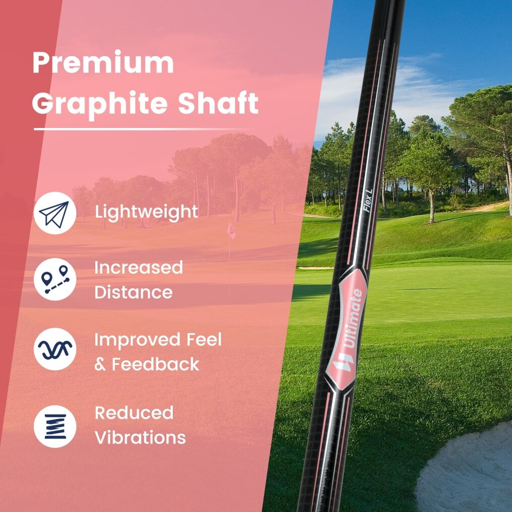 ● Premium Graphite Shaft: Lighter than traditional steel shafts, the graphite shaft offers increased swing speed and distance while providing reduced vibrations for improved feel and feedback on impact.