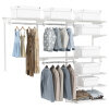● Multi-Tier Enlarged Storage Capacity: Configuration for 4 ft. to 6 ft. wide closets, shelving is 15-inch deep. This customizable configuration closet kit brings the reach-in closets to the next level of convenience with its multi-tier, fixed-mount design. Features 75" hanging space and 230" shelving space, this enlarged closet organizer can accommodate everything from dresses and suits to sweaters and handbags, etc.