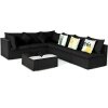 ● Super Comfortable Sofa Set: In order to provide you a cozy experience, this patio conversation set have not only spacious seats but also thick seat cushions, backrest cushions and two pillows. Besides, the seat cushions have a water-proof and washable cover which has a built-in smooth zipper for easy cleaning.
