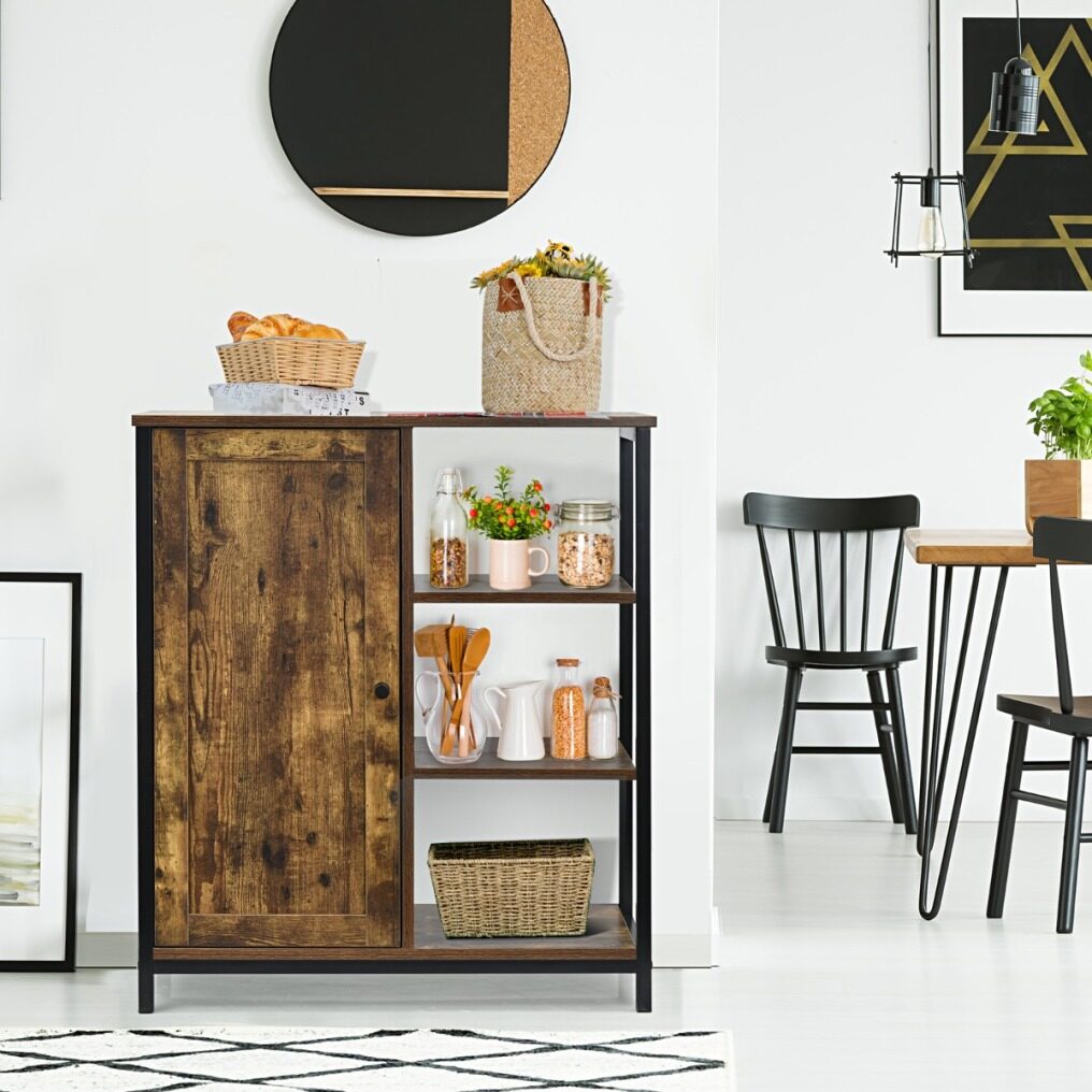 Equipped with a spacious top and 3 open shelves, this cupboard provides ample storage space to satisfy your storage needs. And the middle shelf inside has 3 adjustable positions to provide flexible inner space for items of different heights. The rounded knob and magnetic device allow you to easily open and close the door. Moreover, this cabinet is suitable to be used in an ideal place, including the hallway, bedroom, living room, dining room, and more.