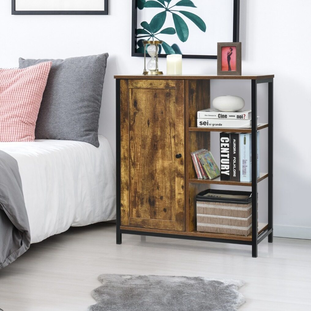 This storage cabinet is made of premium engineered wood with a stable metal frame, which is sturdy and durable for long-lasting use.