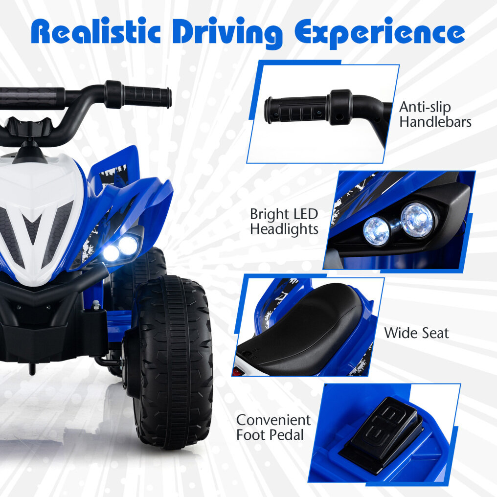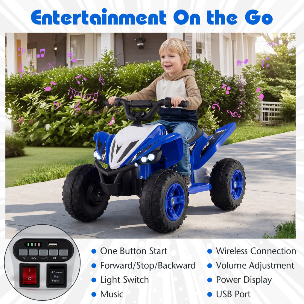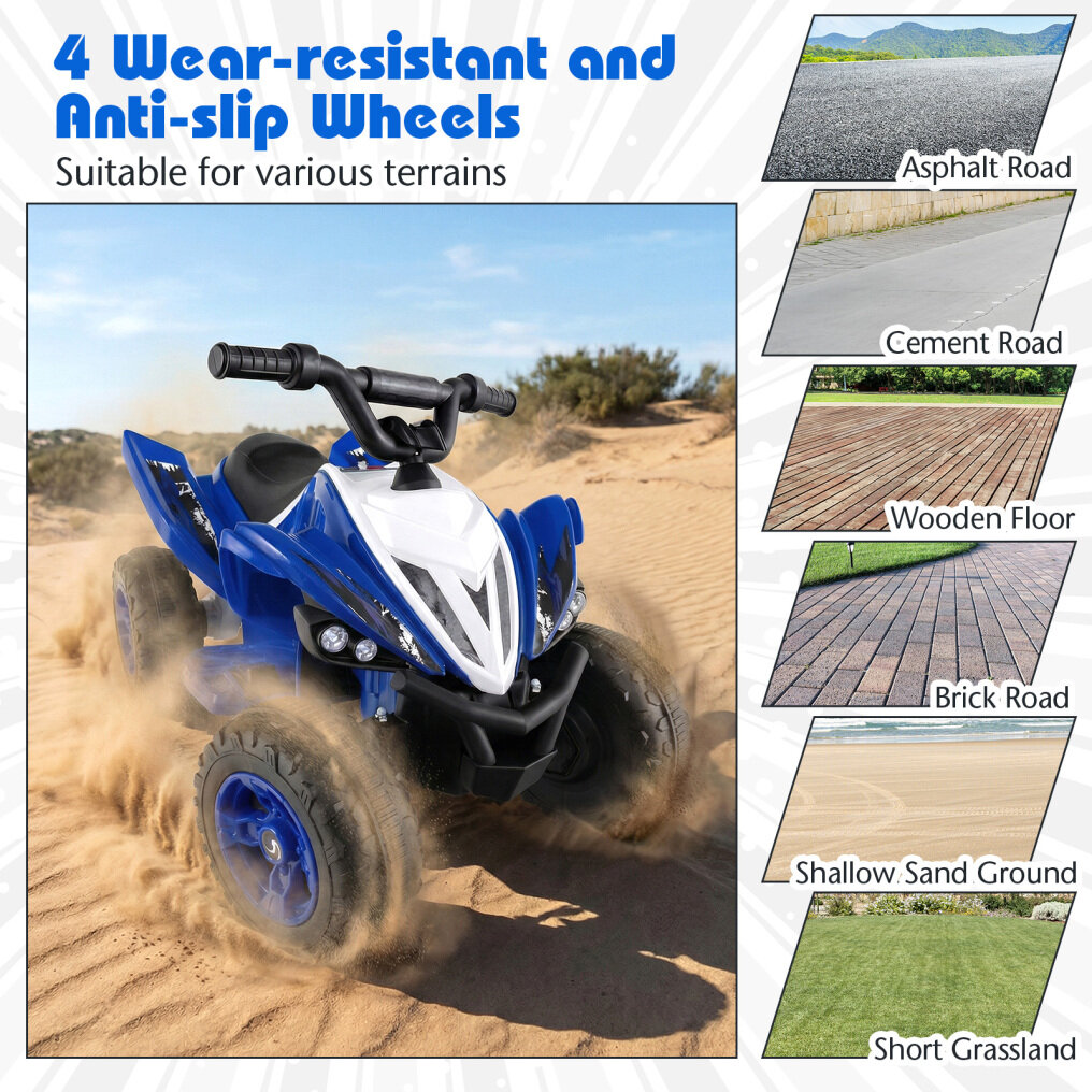 ● Perfect Gift for Little Racers: The quad 4 wheeler ride on toy captures the spirit of youthful adventure and the excitement of steering their own ATV. Not only does it offer an exhilarating physical experience, it also stimulates creativity and imagination, making it an unforgettable gift on birthdays, Christmas and other important festivals.