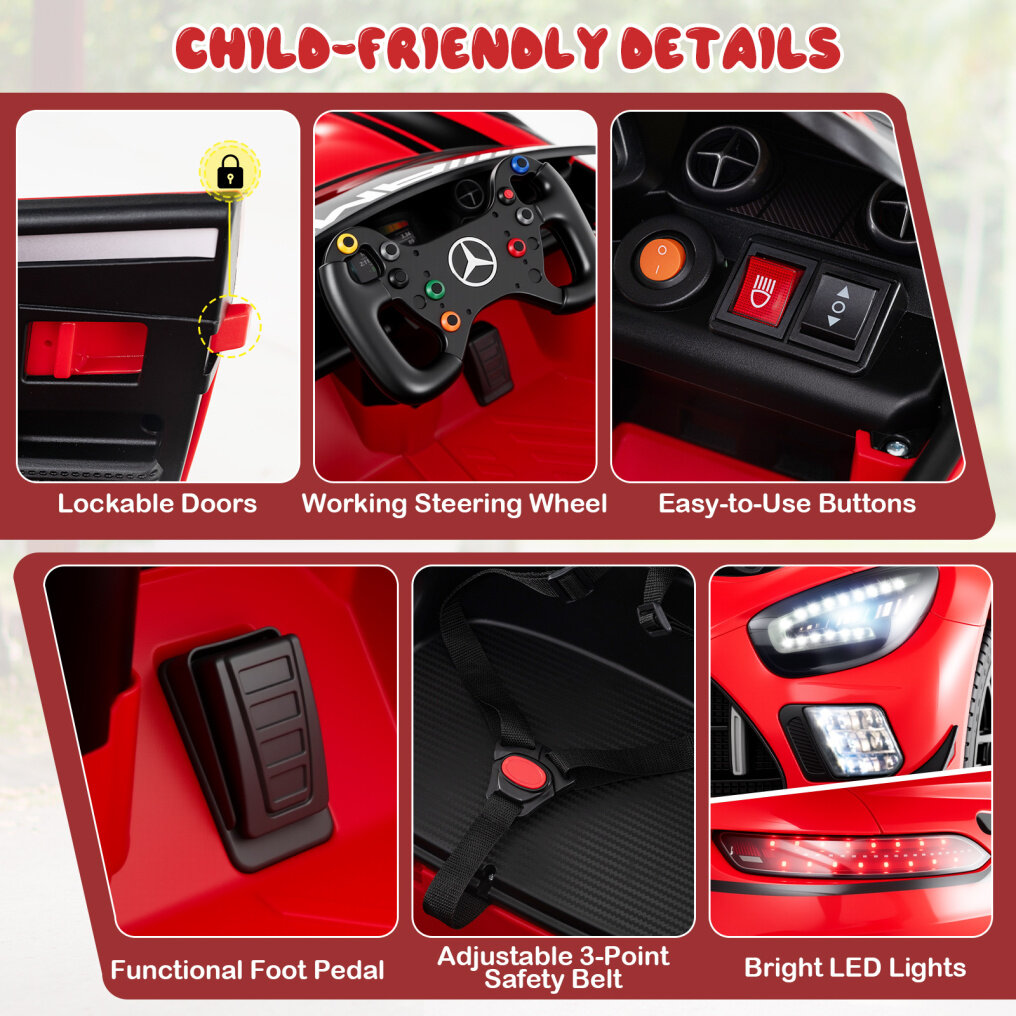 ● Licensed Mercedes-AMG GT3: From the bright LED lights to the stylish spoiler, the kids ride on car is designed to replicate the iconic style and sophistication of Mercedes-AMG. The vivid appearance combines with child-friendly design, making this electric car toy a standout presence.