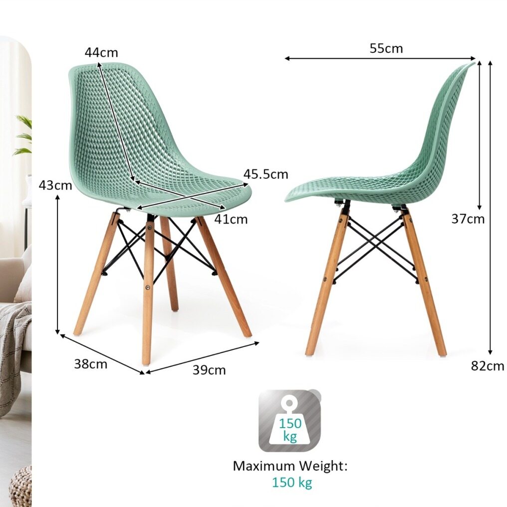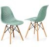 2 Pcs Modern Plastic Hollow Chair Set with Wood Leg-Green
