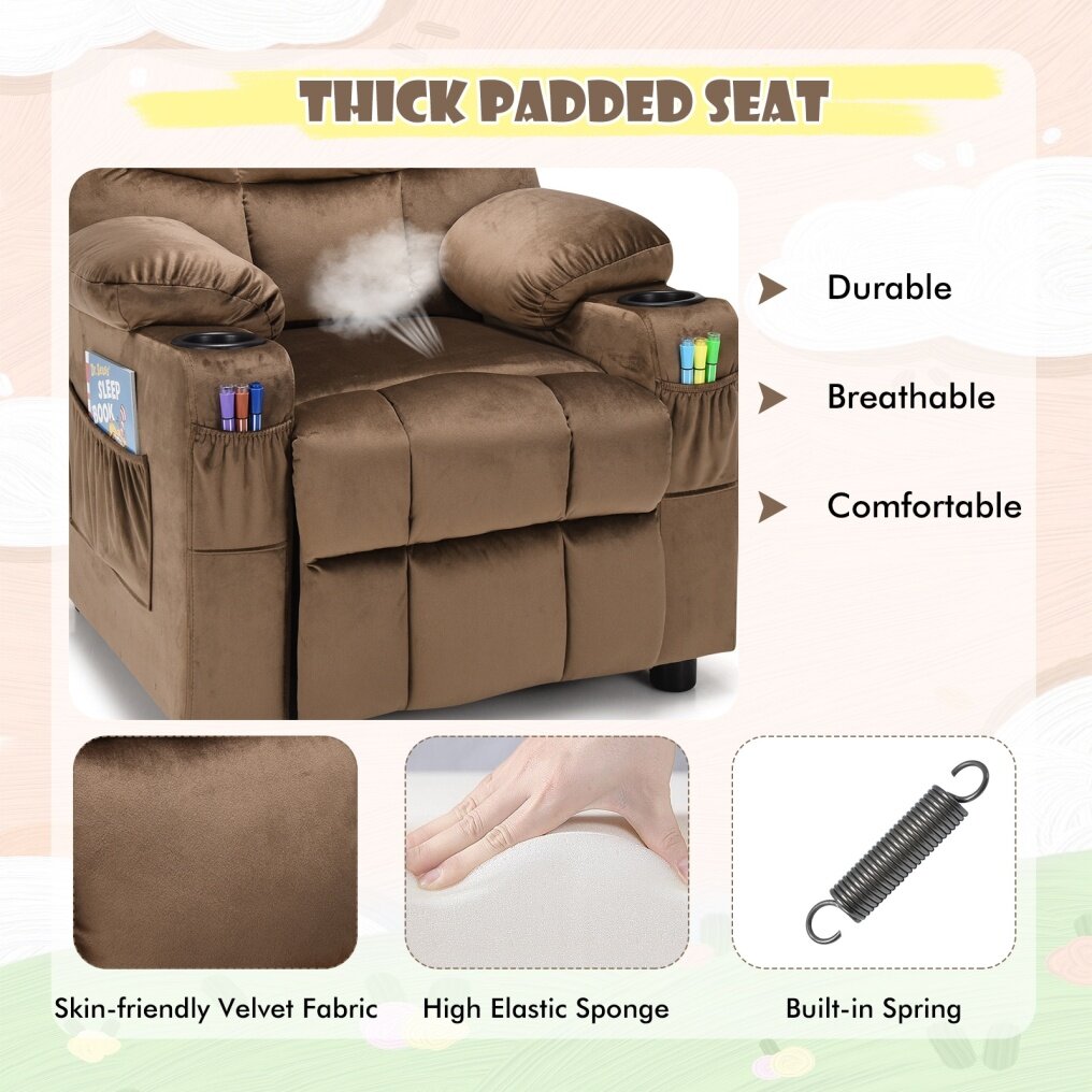 It is also worth mentioning that this recliner is designed with cup holders and side pockets, allowing kids to put water cups, snacks, and books within reach.