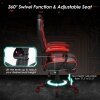● Comfortable Seating with Footrest: Equipped with a high backrest, thick padded seat cushion and massage lumbar pillow, this gaming chair can give you strong support for your whole body, including your neck, shoulders, back, waist and pelvis. Additionally, the retractable footrest is designed for you to take a nap when you're tired.