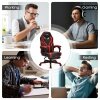 ● High Quality and Durable Materials: This racing-style chair is upholstered with thick cushions which are filled with high-density sponges and covered with smooth PVC leather for upgraded comfort. What's more, this gaming chair comes with a premium class-3 gas rod, which ensures high safety and stability for long-lasting use.