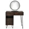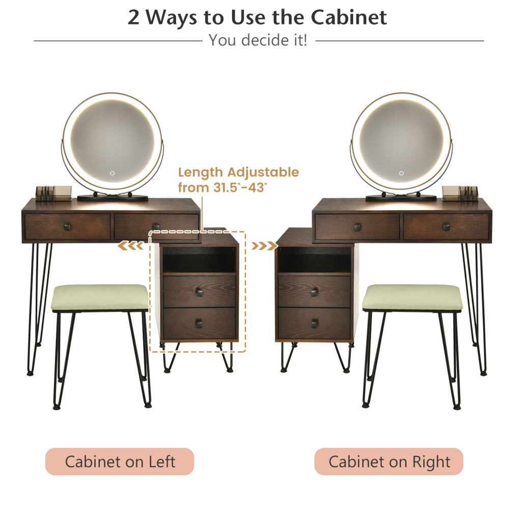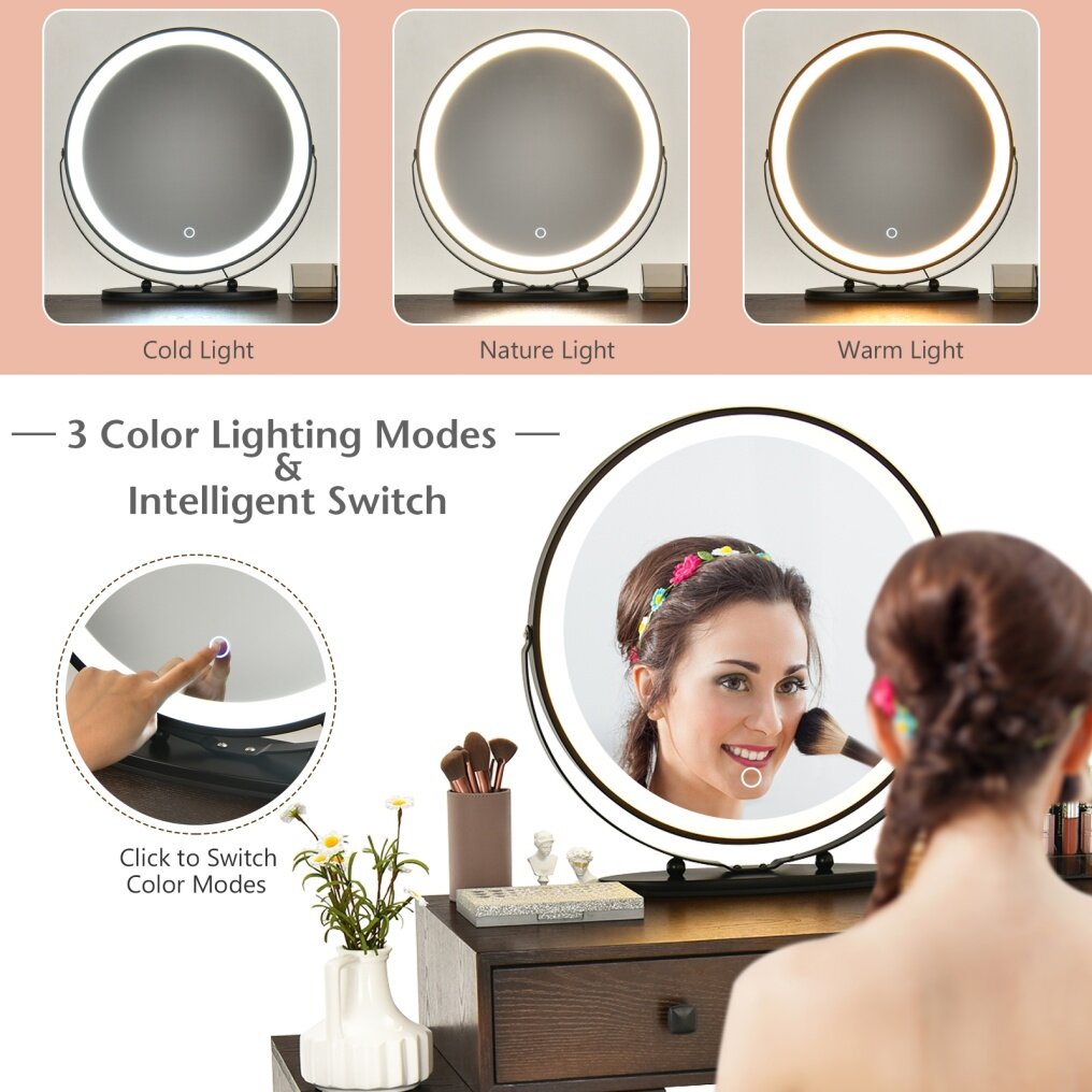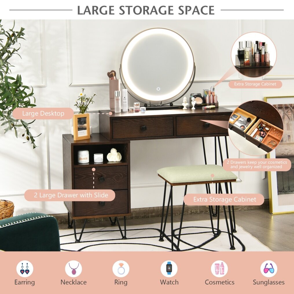 ● Rotatable 3-Color LED Lighted Mirror: The dressing table comes with a 360° rotatable round mirror, allowing you to check your makeup and hairstyle from different angles. Besides, you can adjust the light color and brightness according to different scenes and makeup needs through the touch screen.