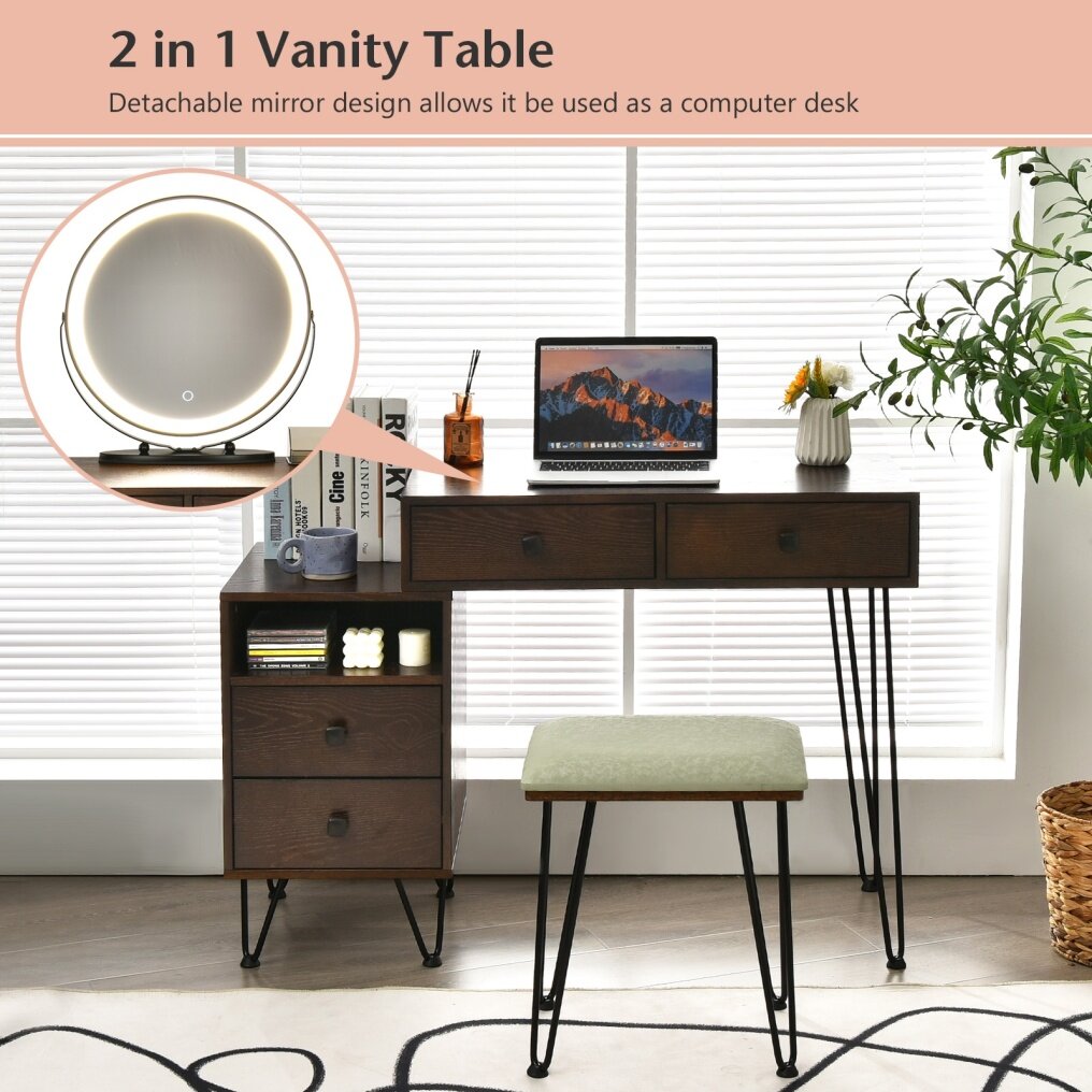 ● 2 in 1 Table with Cushioned Stool: Featuring a detachable mirror, this makeup vanity table can be used as an ordinary writing desk or a laptop table after removing the mirror. Besides, the table comes with an extra soft sponge padded stool that allows you to sit comfortably when doing makeup.