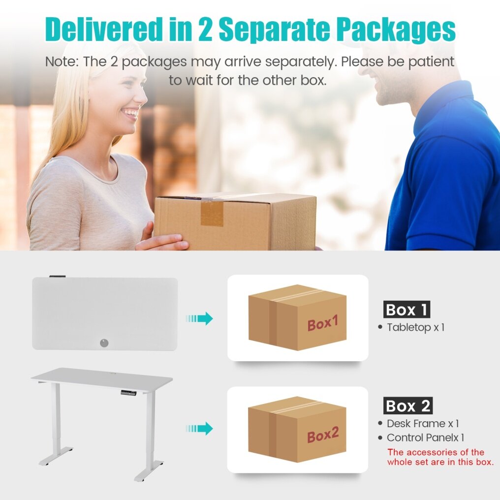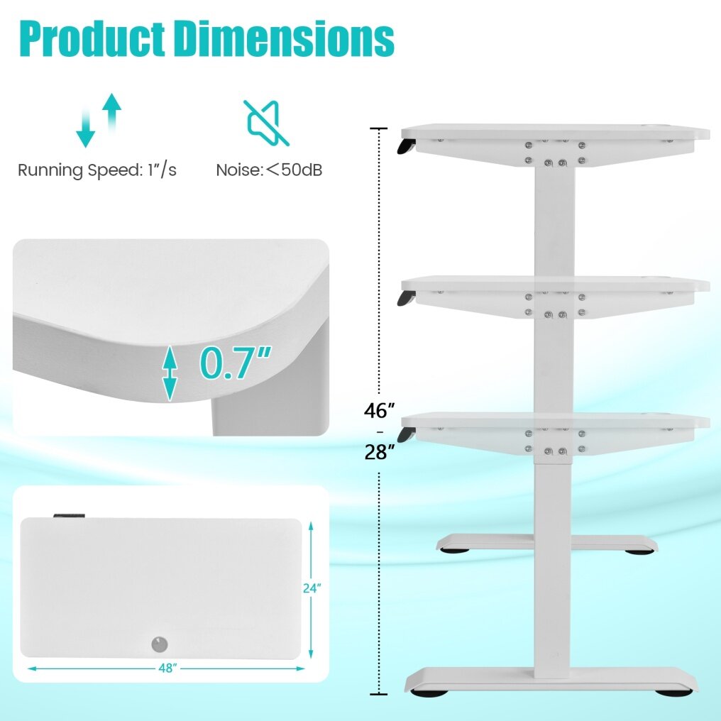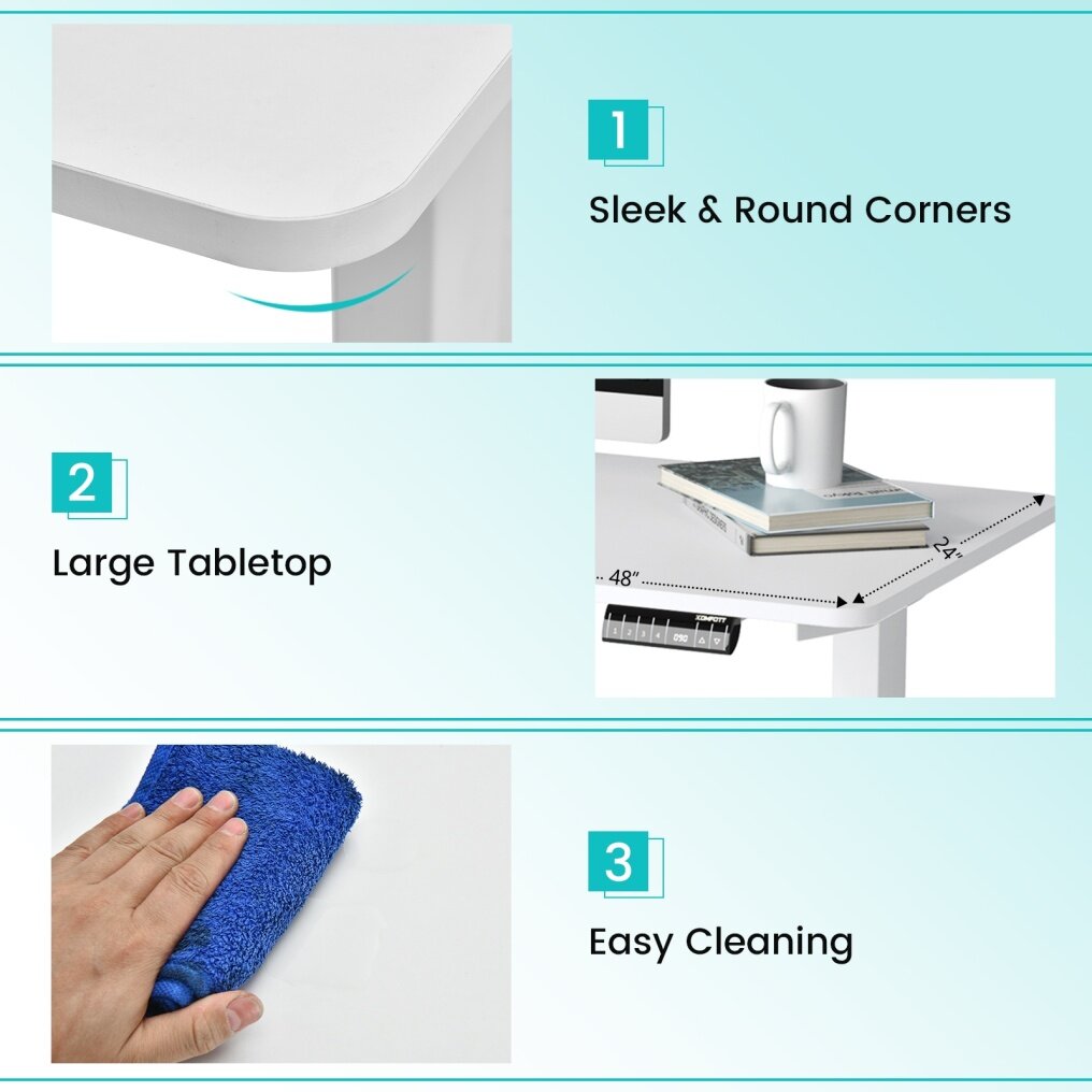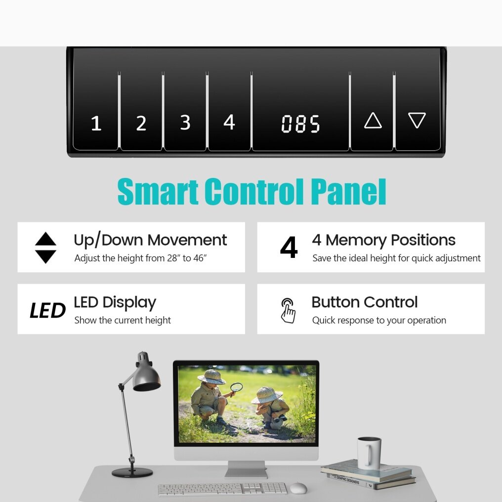 ● Ergonomic and Thoughtful Design: This stand-up desk seamlessly transitions from sitting to standing height for minimum spine fatigue. You can raise or lower the desk to your desired height by operating the control panel. Besides, the desk will stop and rebound to prevent bumps and scratches when there is an obstacle under the desk during the moving process.