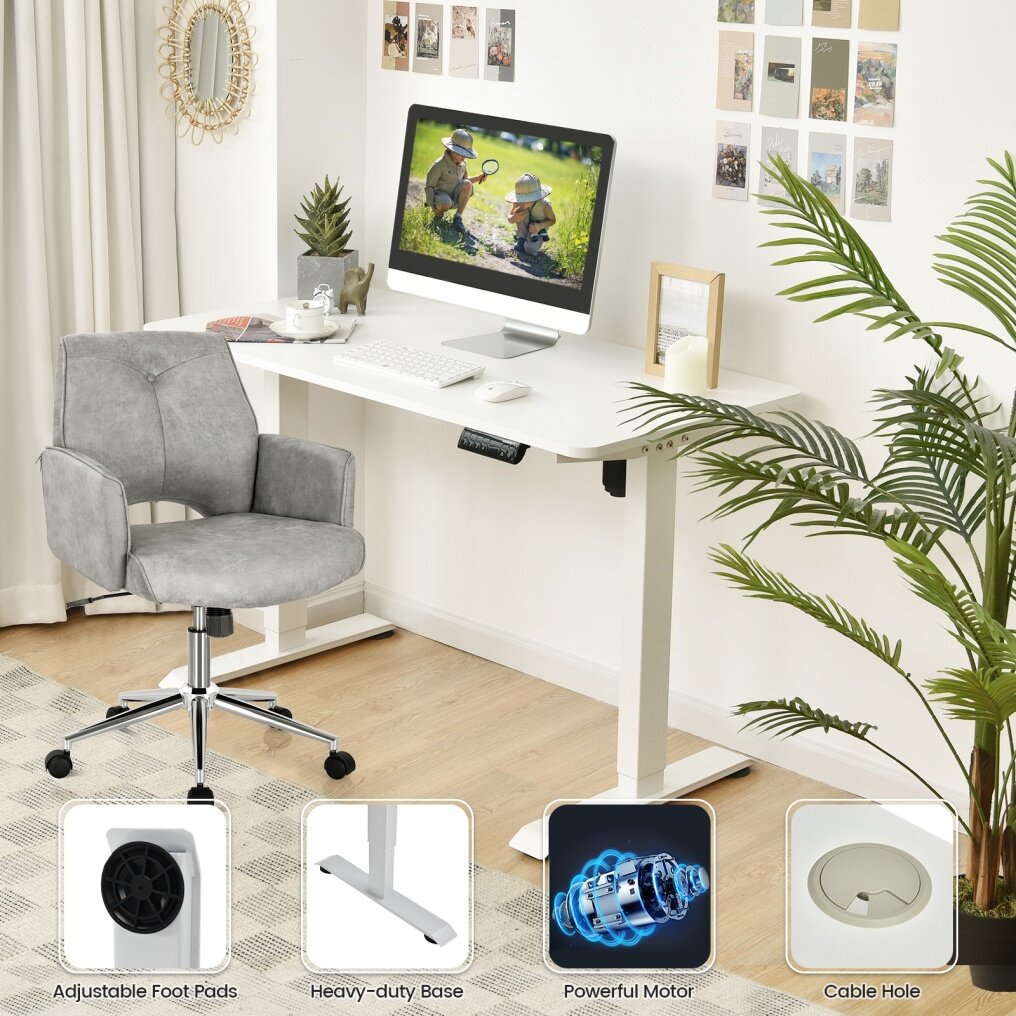 ● Solid Steel Frame and Thickened Board: The electric height adjustable standing desk is consisted of a heavy-duty steel frame and thickened board, showing great performance in load-bearing and durability. It is able to hold up to 155 lbs, providing reliable support to your office essentials. The adjustable foot pads leave you no worry about the standing stability on uneven ground.