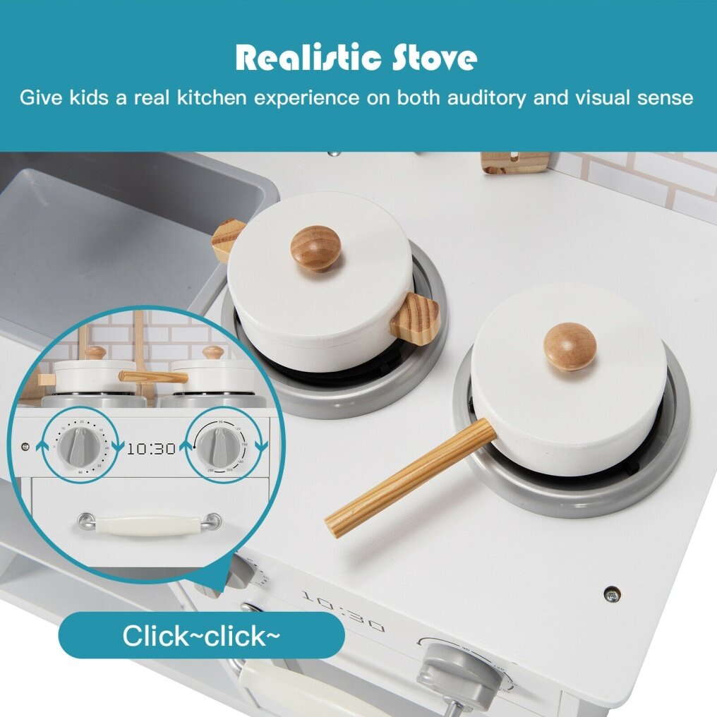 ● Safe and Durable Material: The kitchen playset is made of selected and high-quality MDF, and has passed ASTM certification. Free of bad smells and harmful elements, our product ensures your kid’s good health. Other than that, solid structure and durable material make the playset able to accompany your baby for a long time.