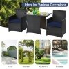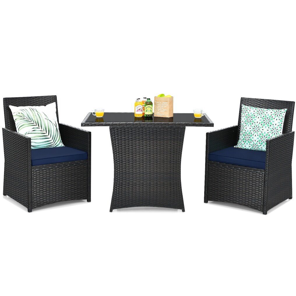 ● 3 PCS Patio Bistro Set: Including a practical coffee table and 2 armchairs, this 3-piece patio dining set creates a comfy area for your morning coffee or dinner time with the one you loved. The convenient coffee table with spacious tabletop allows you to place different items, from magazines and ornaments to drinks and snacks.