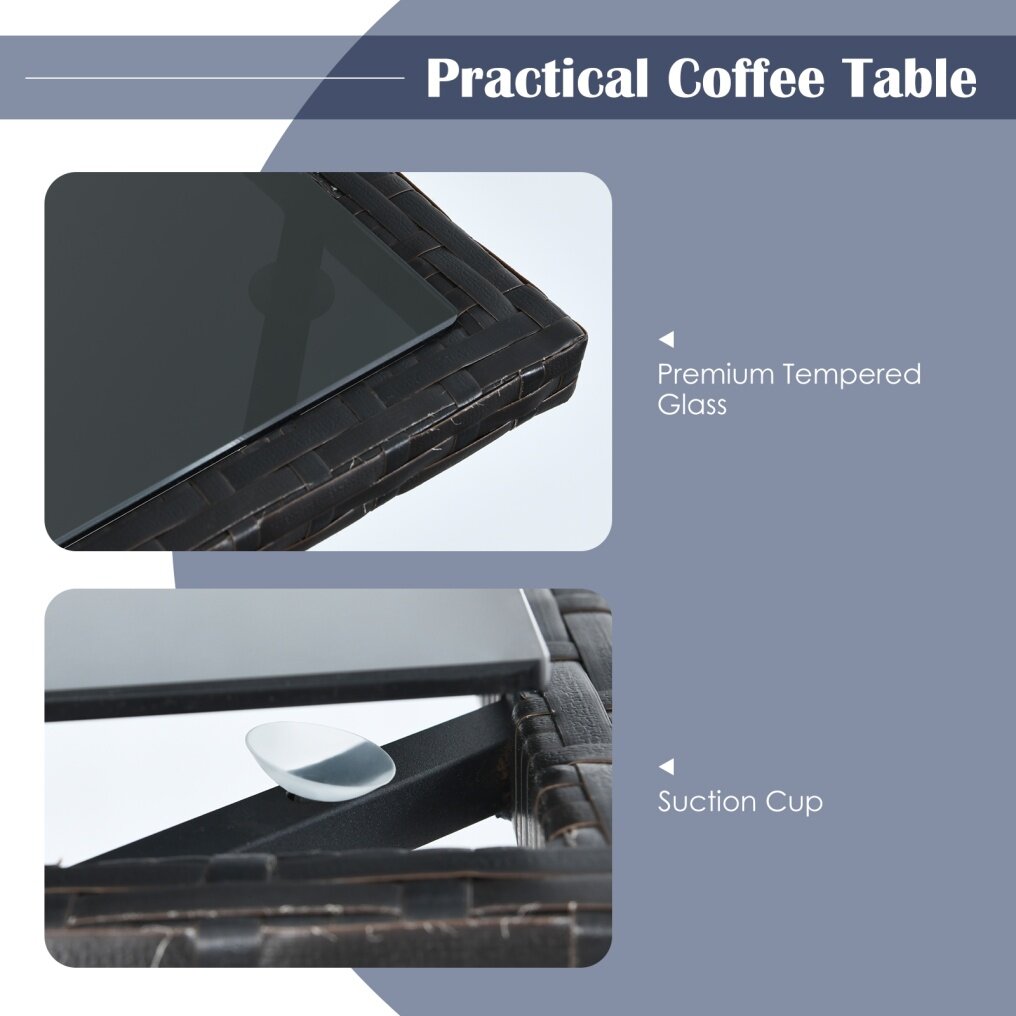 ● Sturdy Construction: Constructed of heavy duty steel frame with powder coated, this outdoor conversation set is rustproof yet sturdy to hold up to 110 lbs for table and 350 lbs for each chair. The weather-resistant PE rattan wraps the frame, which makes it withstand changeable weather. The non-slip foot pads ensure structural stability.