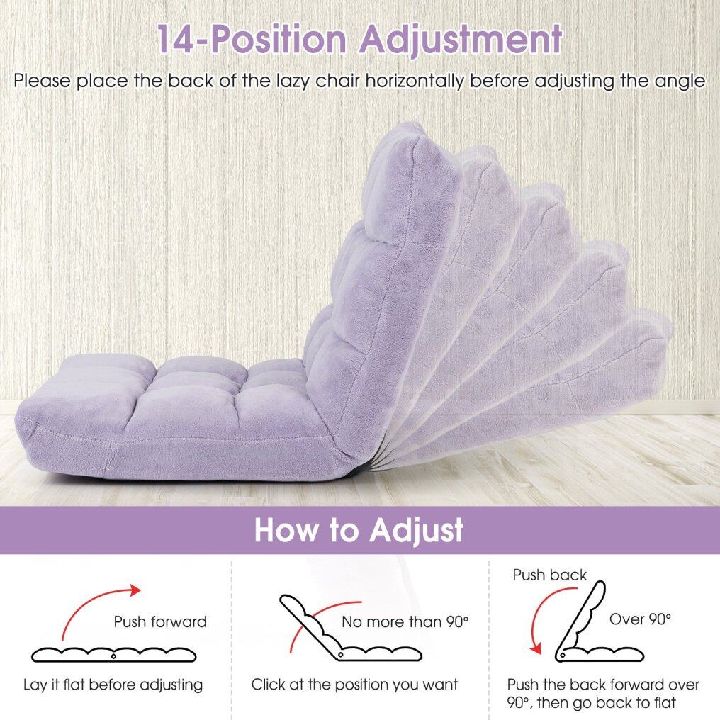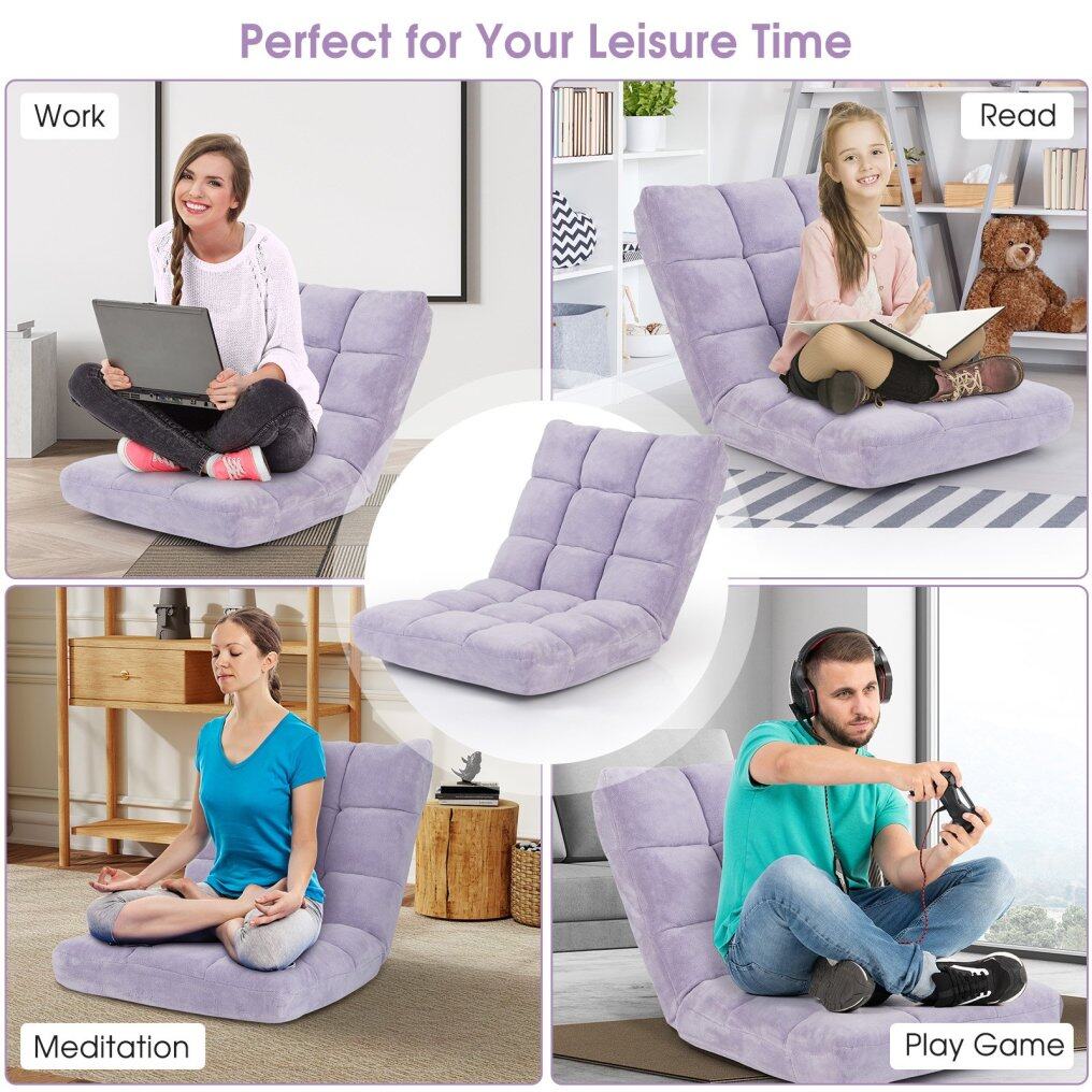 ● Multi-purpose Use and Easy Storage: Whether you're reading, playing games, watching TV, or meditating, the floor chair will provide a comfortable and soft seat for you. 14-position backrest offers different angles, suitable for different occasions. Thanks to its folding function, the chair can be easily flatted to store under the bed or tall couch, saving much space.
