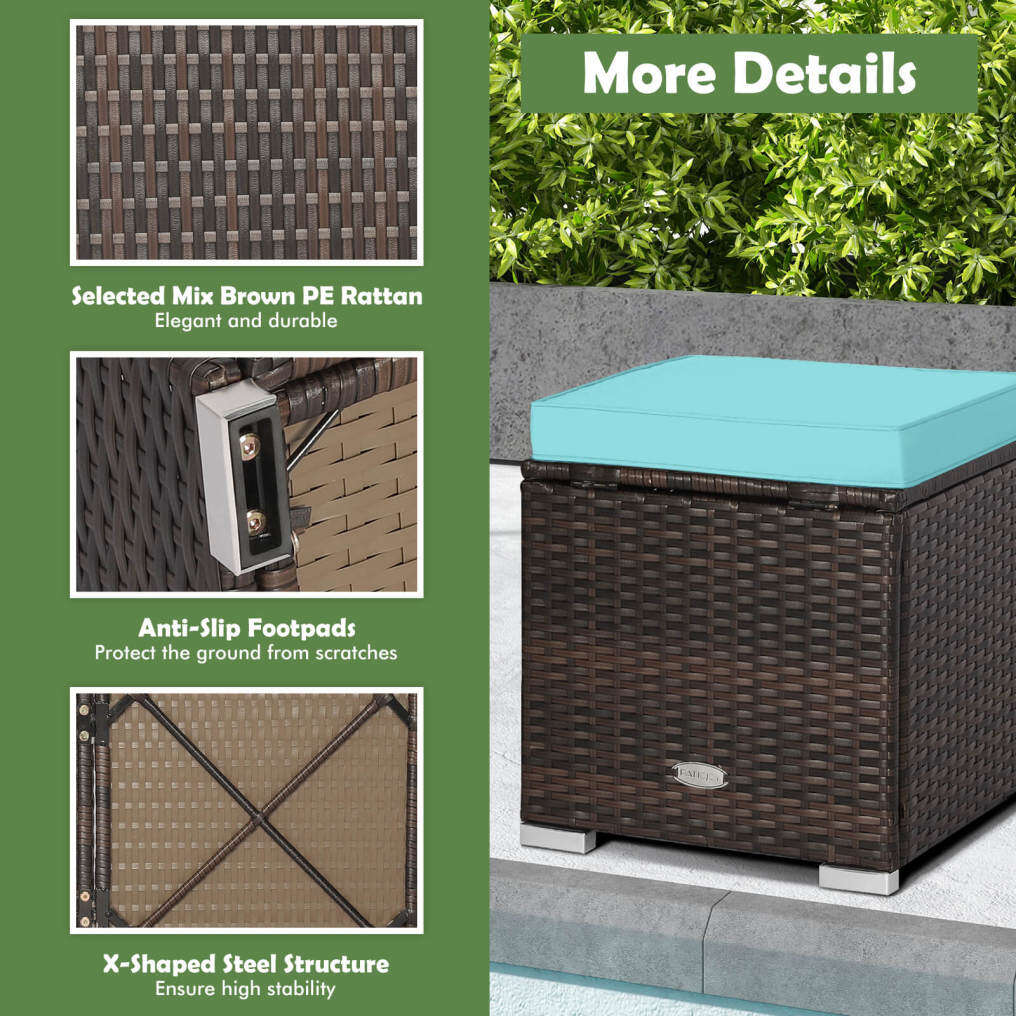 ● 4-in-1 Versatile Ottomans: This rattan ottoman not only provides a perfect place for you to relax your feet, but also can be used as an additional seat for the rattan sofa set. Also, the top lid can be flipped for storage. When the cushion is removed, the ottoman turns into a functional side table.